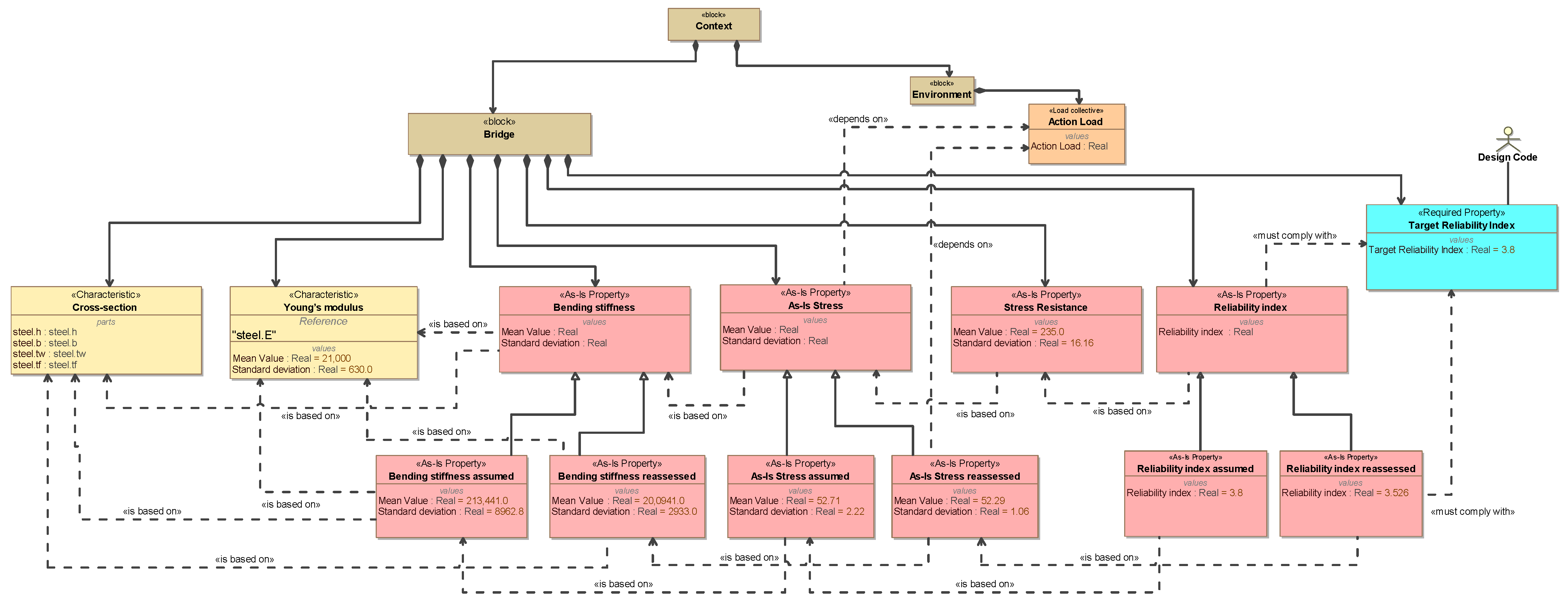 Figure 9. Excerpt from the SysML system model for reassessing the as-is properties of the bridge.
