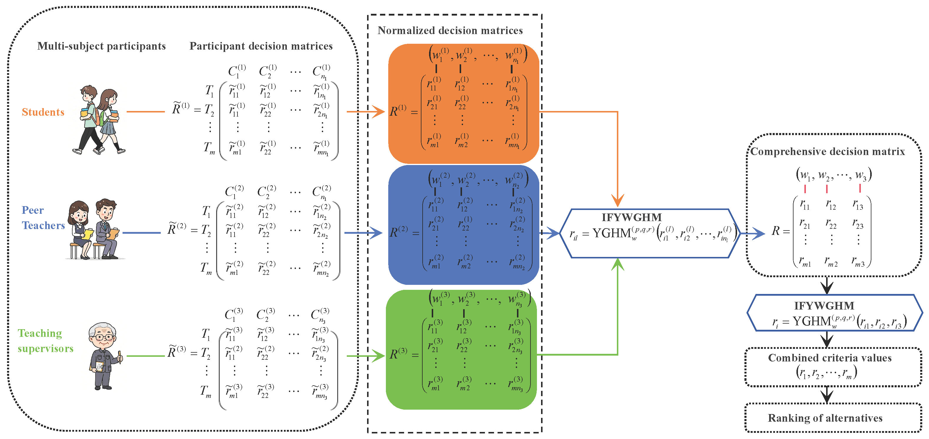 Chicago/Turabian StyleZou, Chengye, Yongwei Yang, Changjun Zhou, and Hao Zhang. 2026. "Decision Algorithm of Teaching Quality Evaluation for Higher Education System Based on Intuitionistic Fuzzy Geometric Yager Heronian Mean Operators" Systems 14, no. 1: 20. https://doi.org/10.3390/systems14010020
