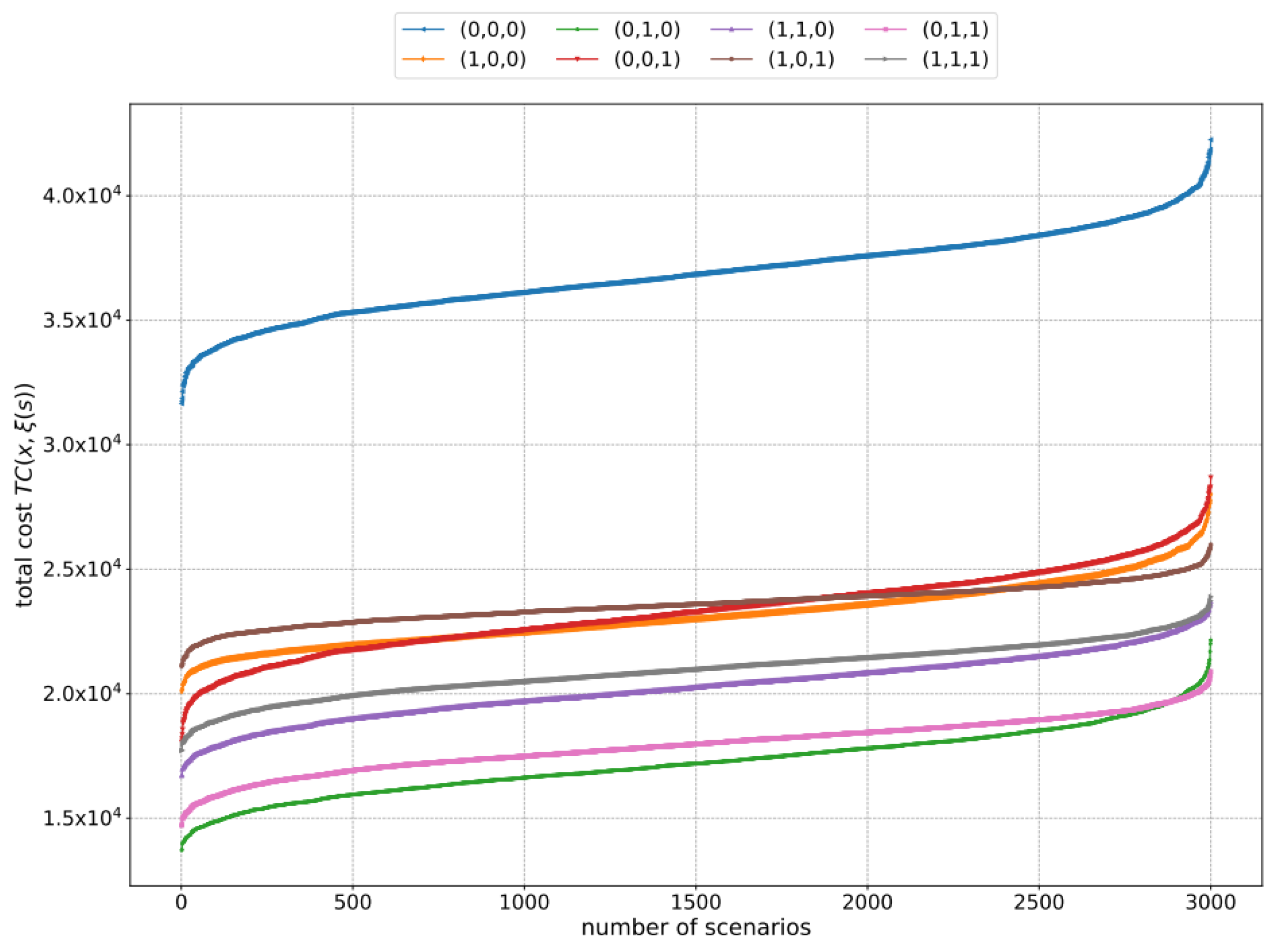 ) are independent stochastic numbers. The set of all scenarios with possible realizations of