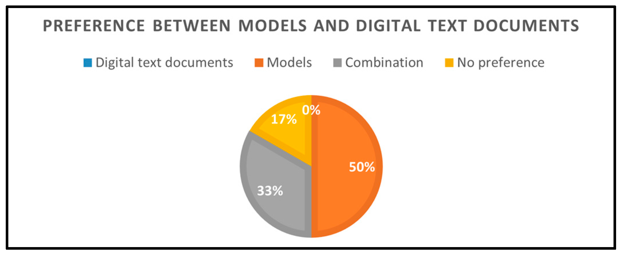 | Accessibility and usability | Text documents are easier to create and access, but need to be well-written. Tools for text documents are easier to work but managing information in models is better with time. | “Documents are good as anyone can access” (P1) “Document is good if it is well written […] it is easy to create.” (P2) “We should use a model, it will be a quicker way of working” (P5) |