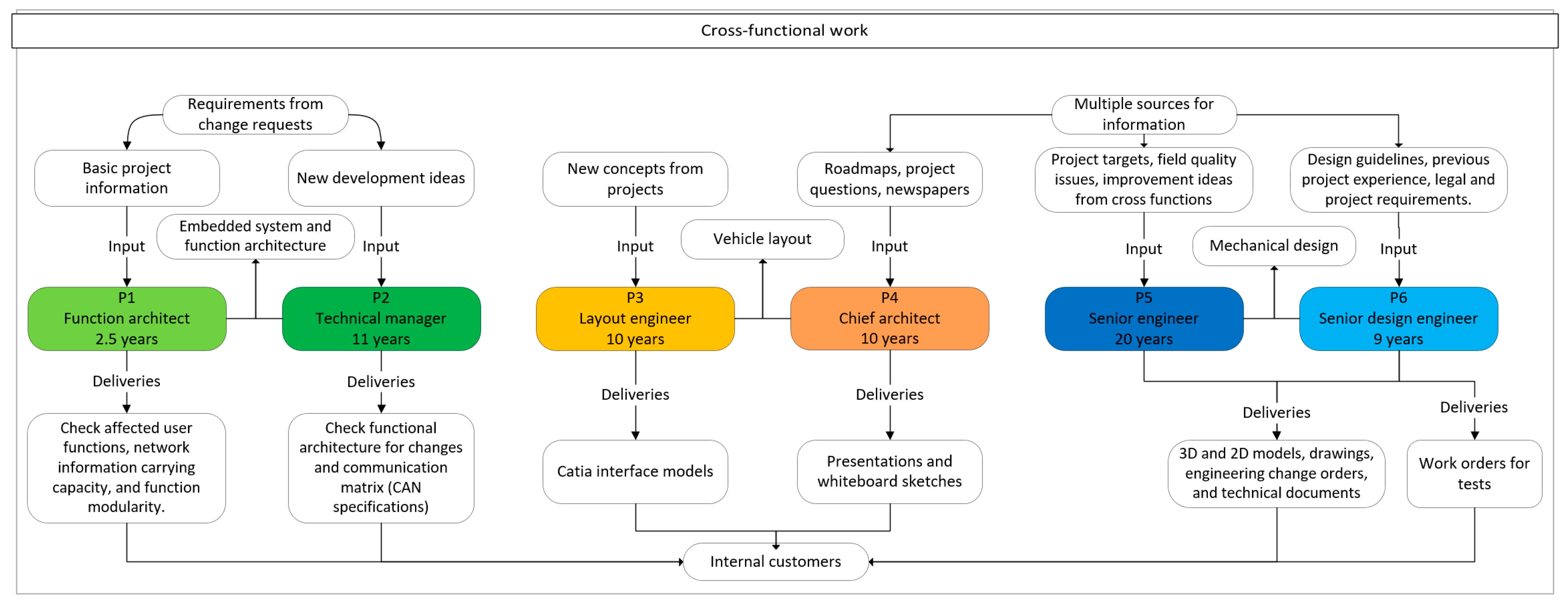| Heterogeneity and interdisciplinary work | “Complexity is due to different areas (disciplines) in the truck. […] Difficult to know about everything and how things work.” (P1) “Each department has its own requirements to fulfill, and it is a challenge.” (P5) |