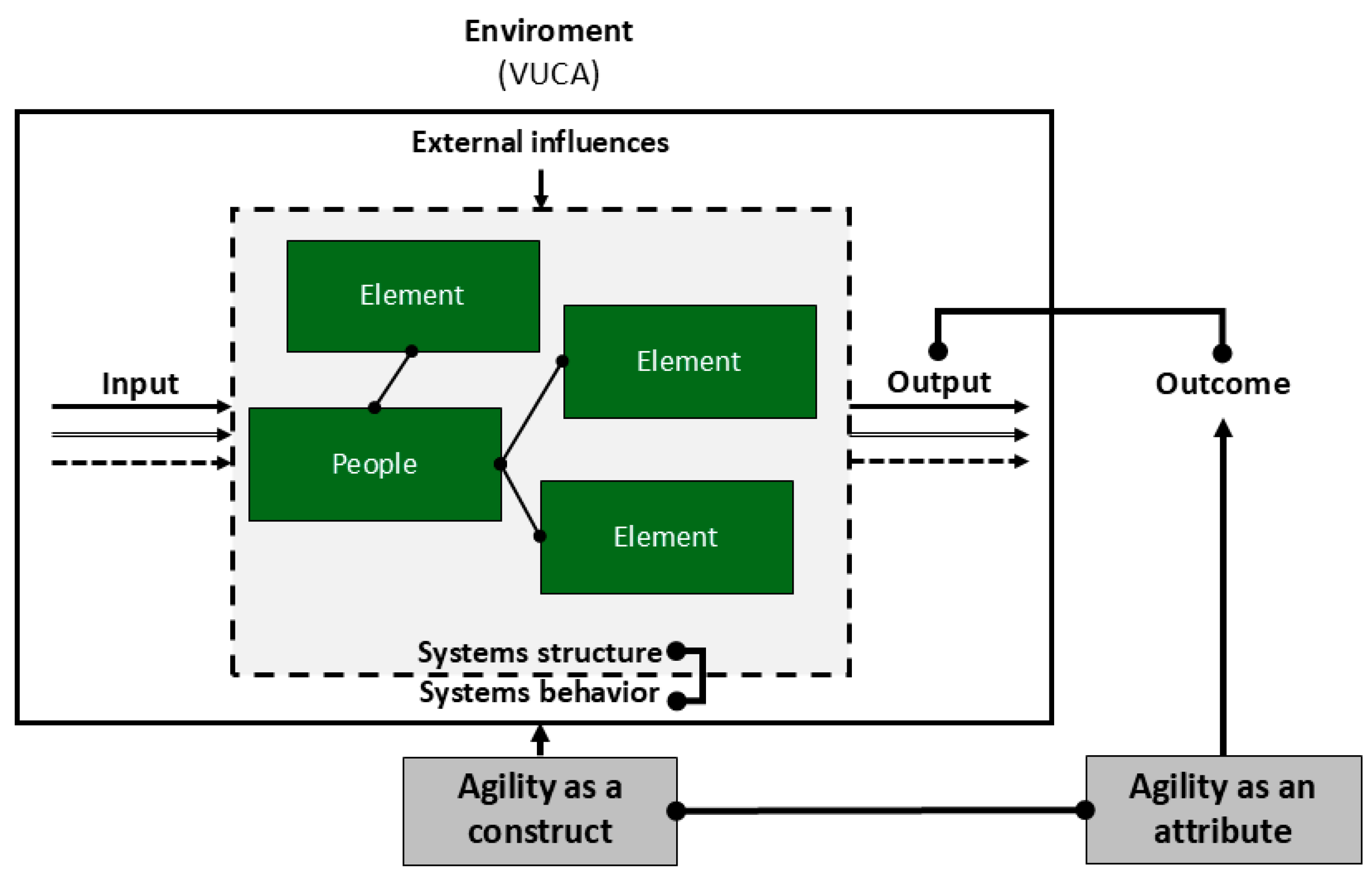 | [140] | A definition of agility is provided. No further approach is provided. The focus is on condensing a basic understanding of agility. | Extends the understanding by linking the perspective to a construct which is based on a system-theoretical approach. |