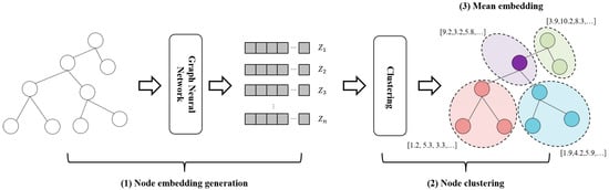 Figure 2 illustrates the method. First, GraphSAGE generates embeddings for each employee node. Second, we apply a hierarchical clustering algorithm to these embeddings to group nodes into clusters based on their structural and attribute similarity. Finally, we calculate the mean embedding vector for each cluster to represent the collective characteristics of that group.