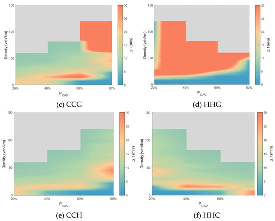 It is difficult to directly conclude whether a larger speed difference indicates an optimal traffic system. However, from the perspective of CAV adoption, a greater relative speed advantage could enhance CAVs’ market appeal. This, in turn, may increase the penetration rate of automated vehicles.