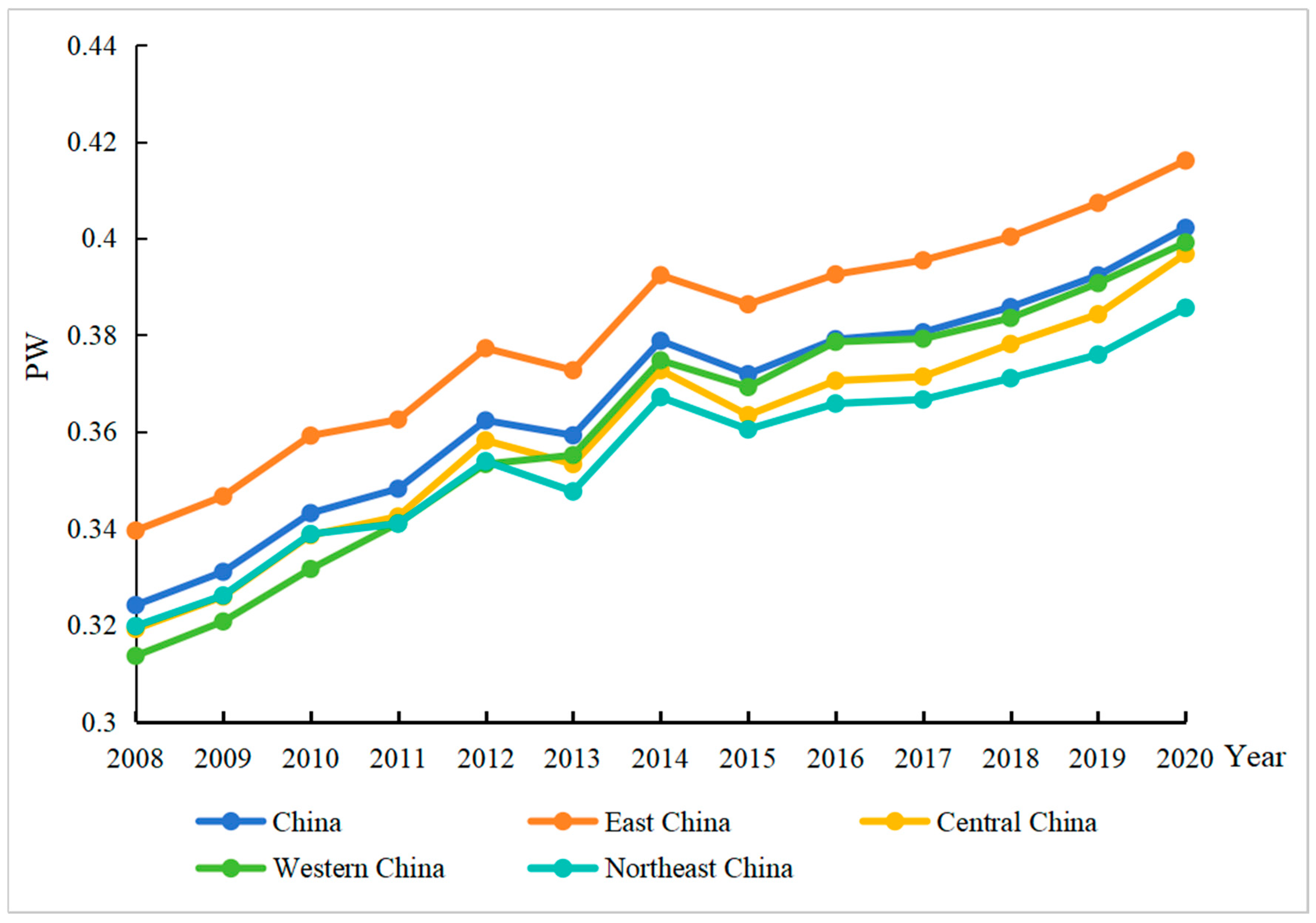 5.1.2. Dynamic Evolution Analysis of People’s Well-Being