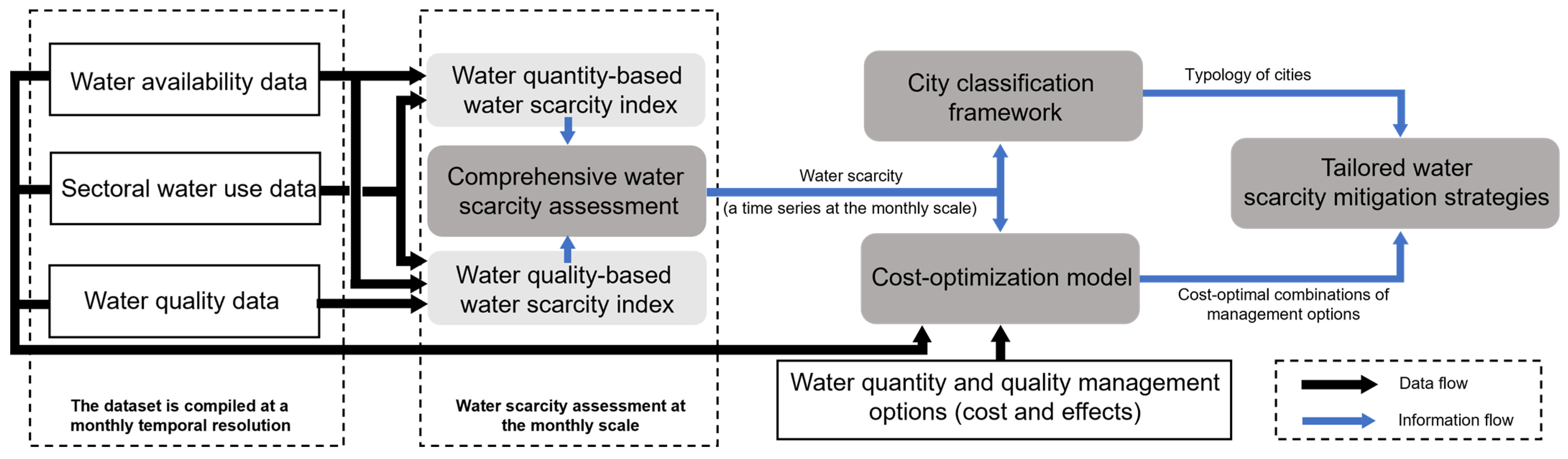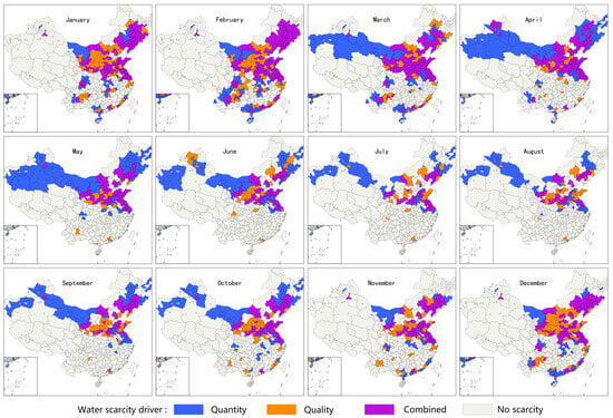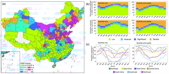 - Huang, W.; Shuai, C.; Xiang, P.; Chen, X.; Zhao, B. Mapping water scarcity risk in China with the consideration of spatially heterogeneous environmental flow requirement. Environ. Impact Assess. Rev. 2024, 105, 107400. [Google Scholar] [CrossRef]