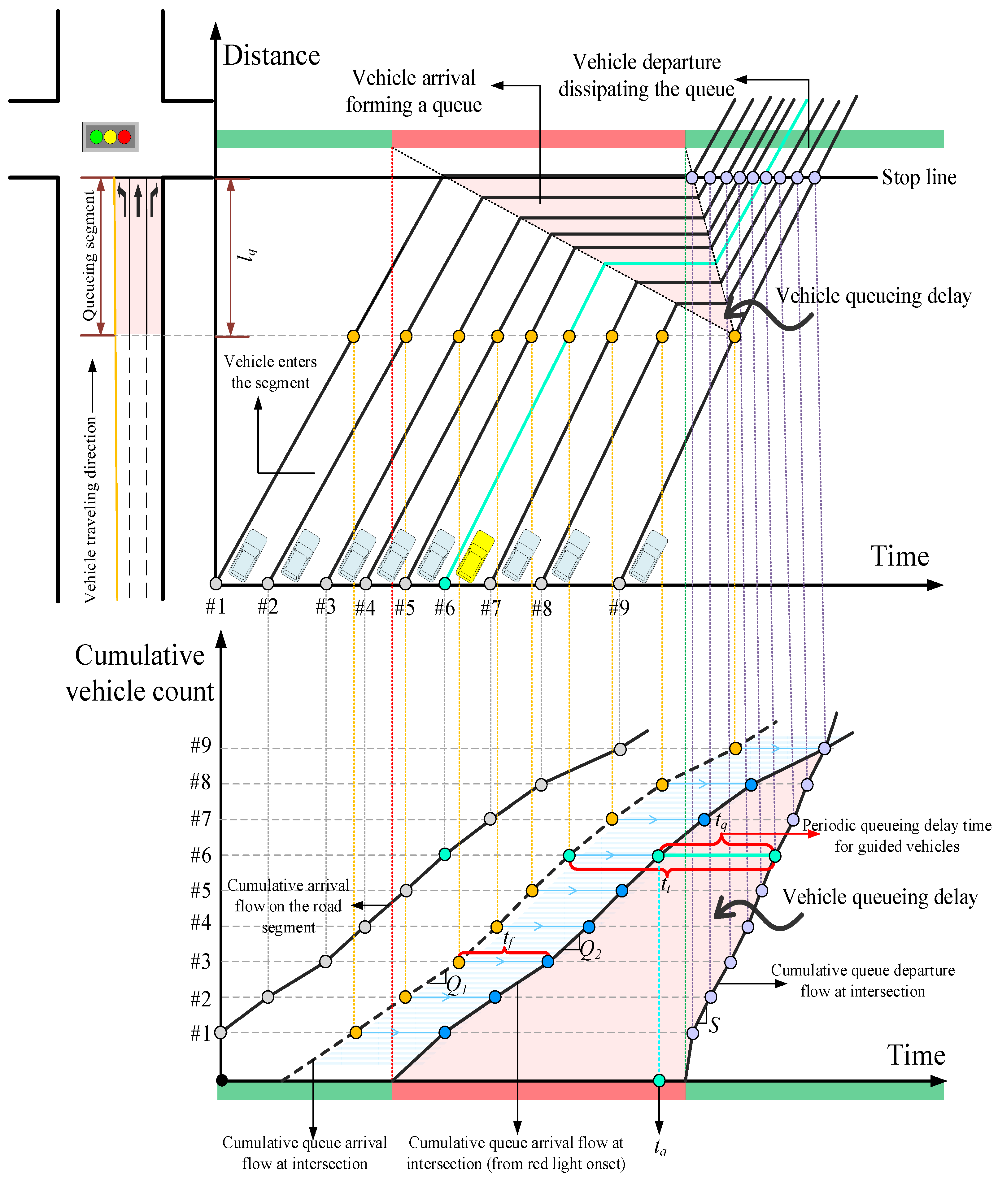 3.3.2. Calculation of Periodic Queuing Delay at Signalized Intersections