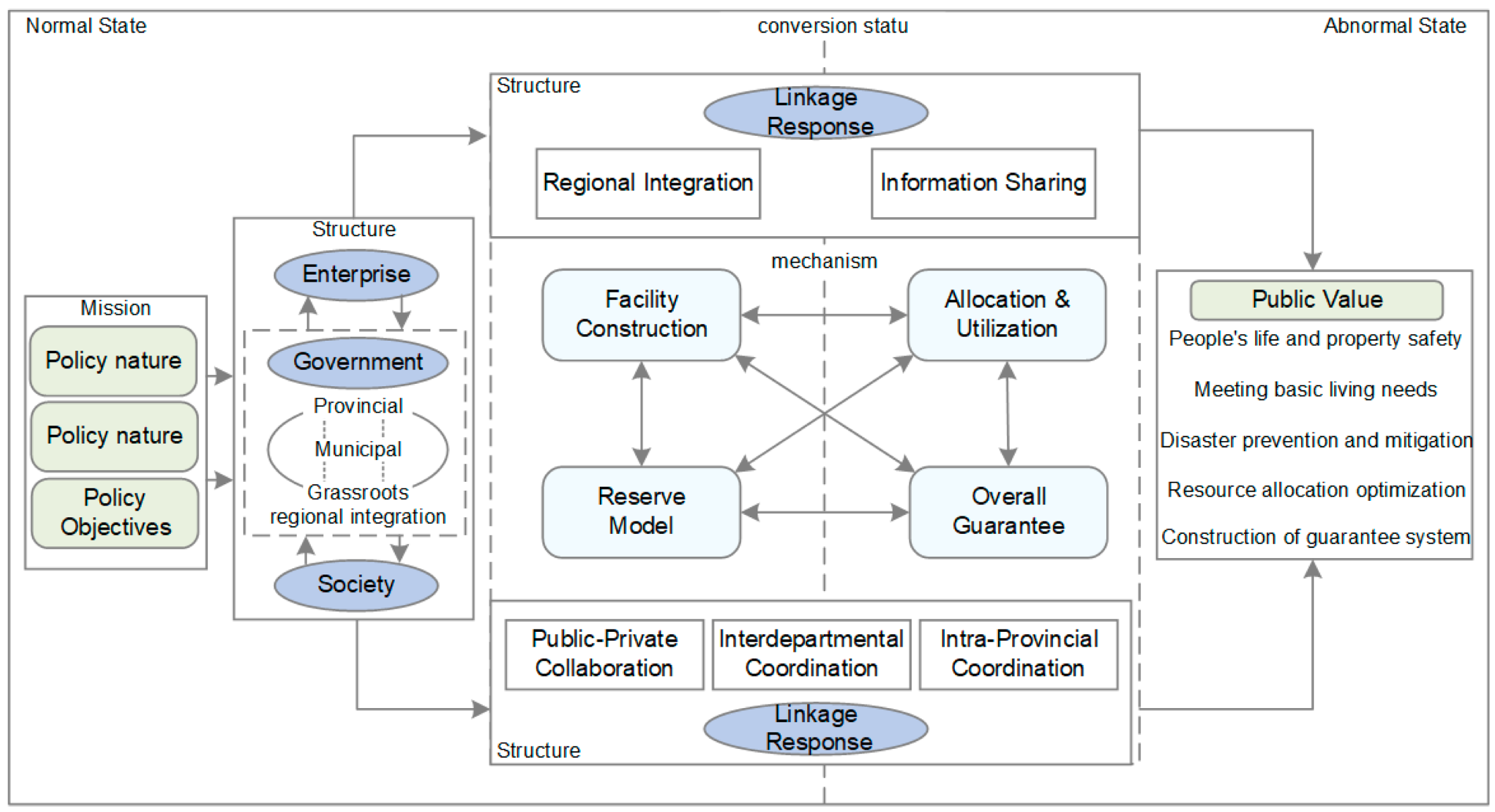 | Mission | Policy Context (X1) | Regular State (X1-1) | Addresses routine governance conditions. | Revised according to the analysis framework |