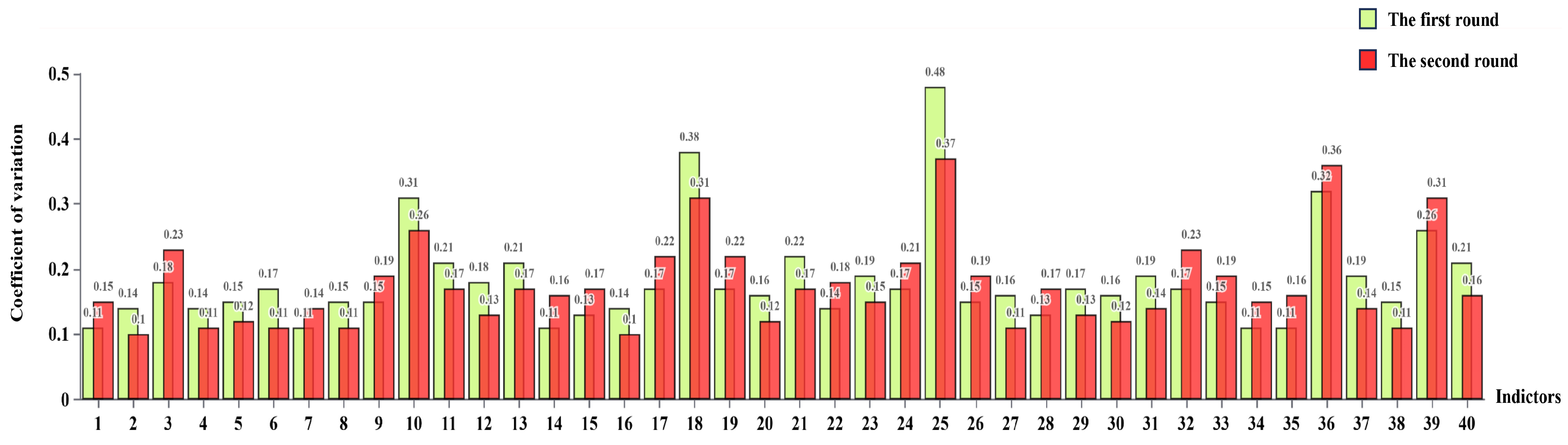 4.1.2. Calculation Results of the Coefficient of Variation of the Index