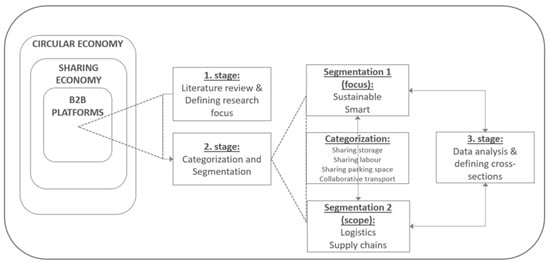 As illustrated in Figure 1, the methodological approach follows a structured, multi-stage logic grounded in system theory. The framework guides the identification, categorisation, segmentation, and comparative evaluation of B2B sharing economy platforms in logistics and supply chains. The individual methodological steps are described in detail in the following subsections.