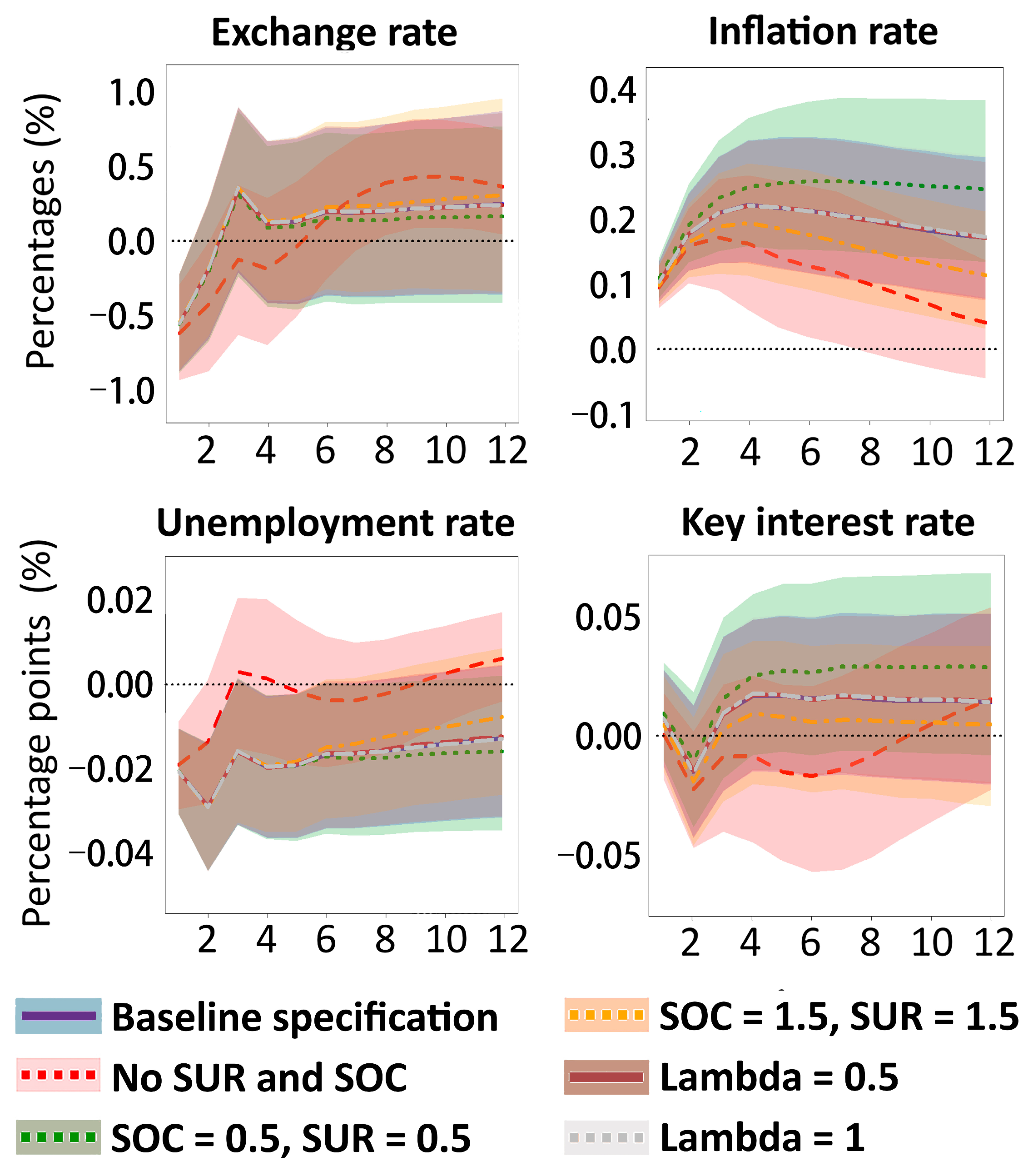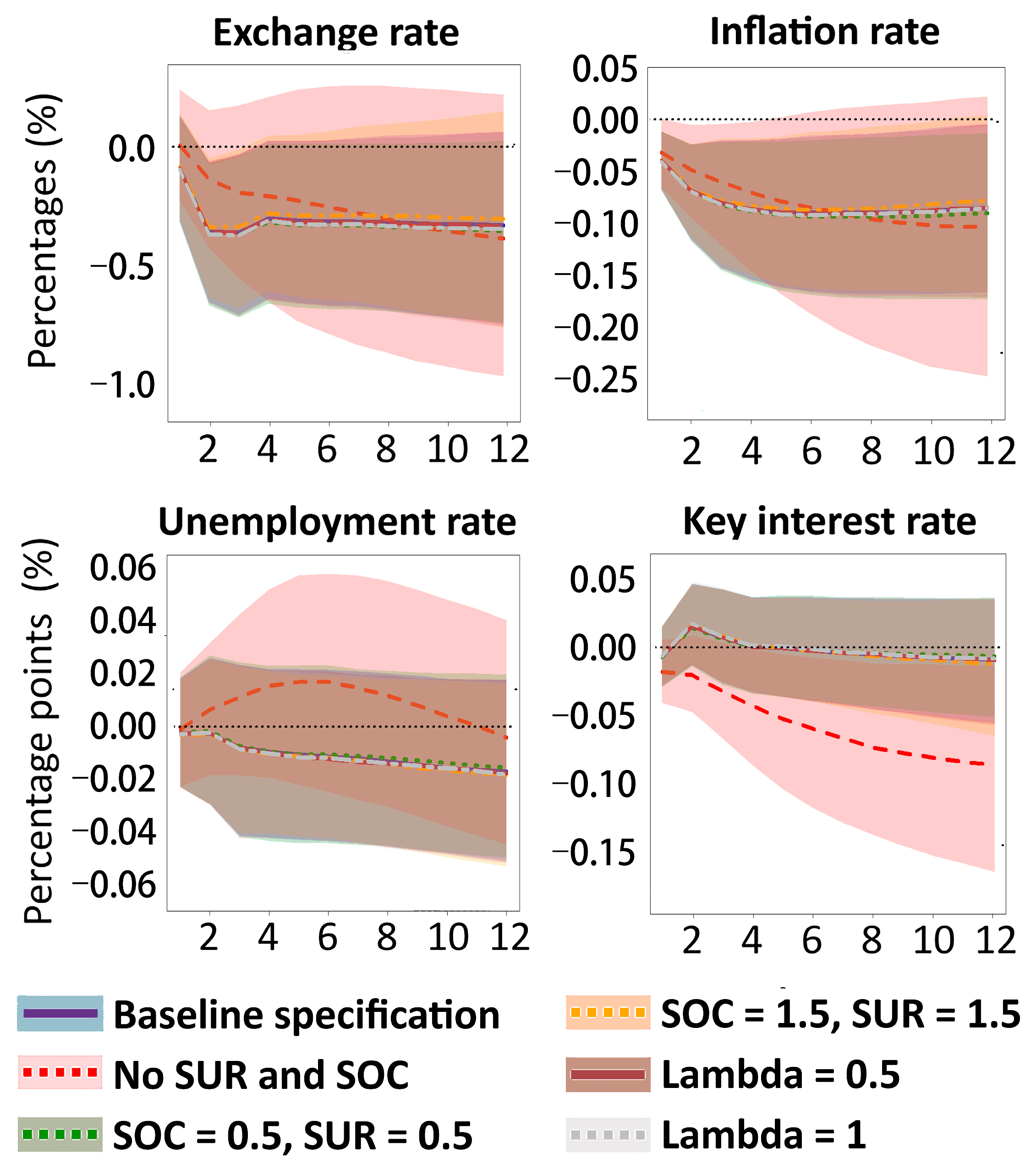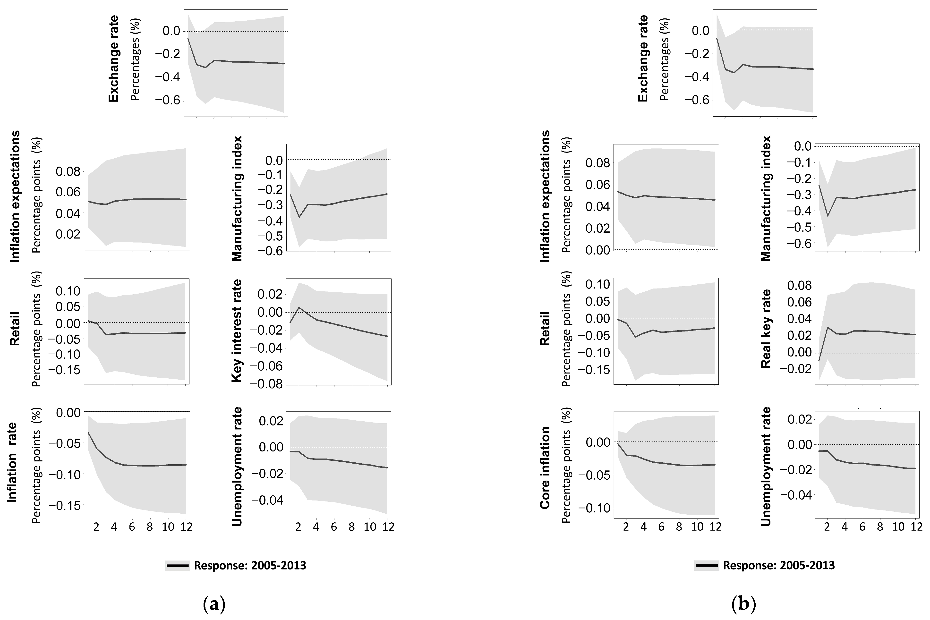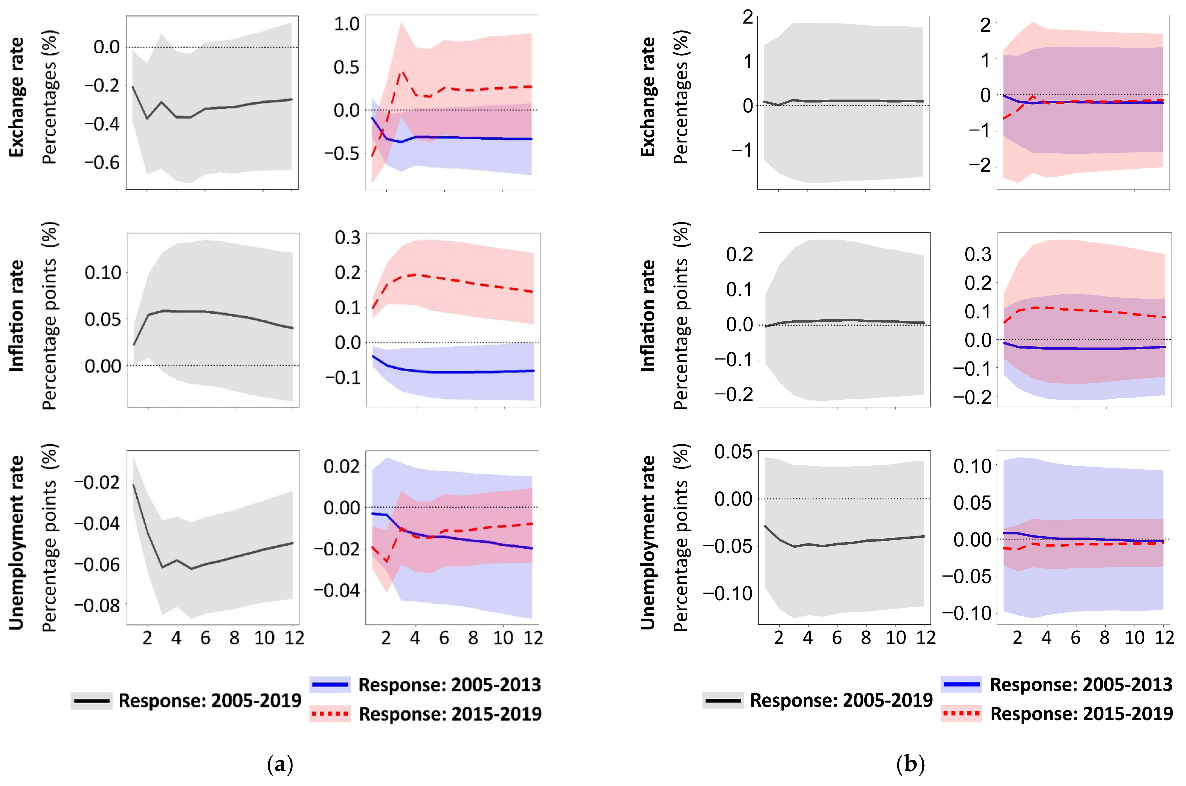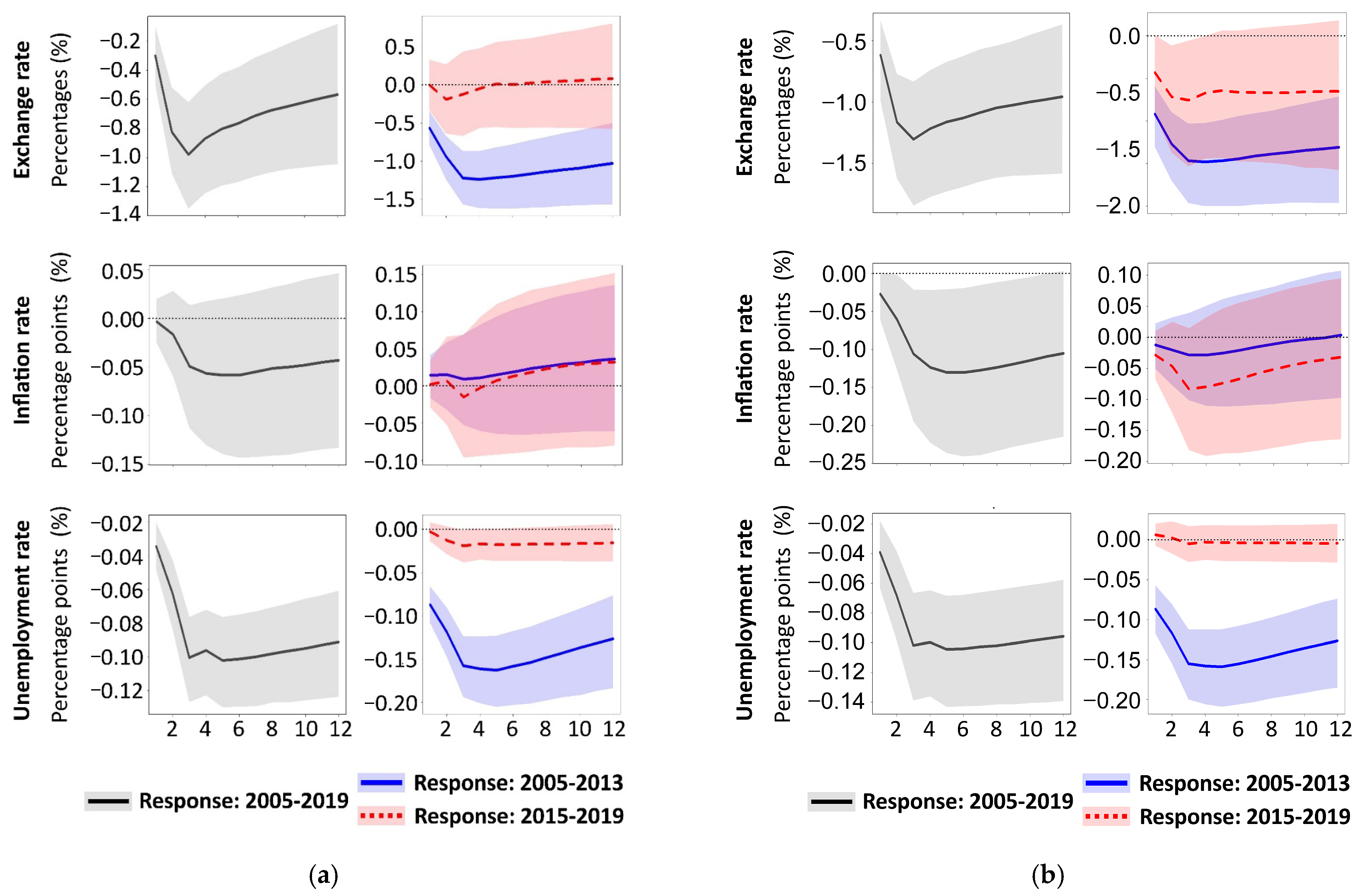 - Hnatkovska, V.; Lahiri, A.; Vegh, C.A. The exchange rate response to monetary policy innovations. Am. Econ. J. Macroecon. 2016, 8, 137–181. [Google Scholar] [CrossRef]