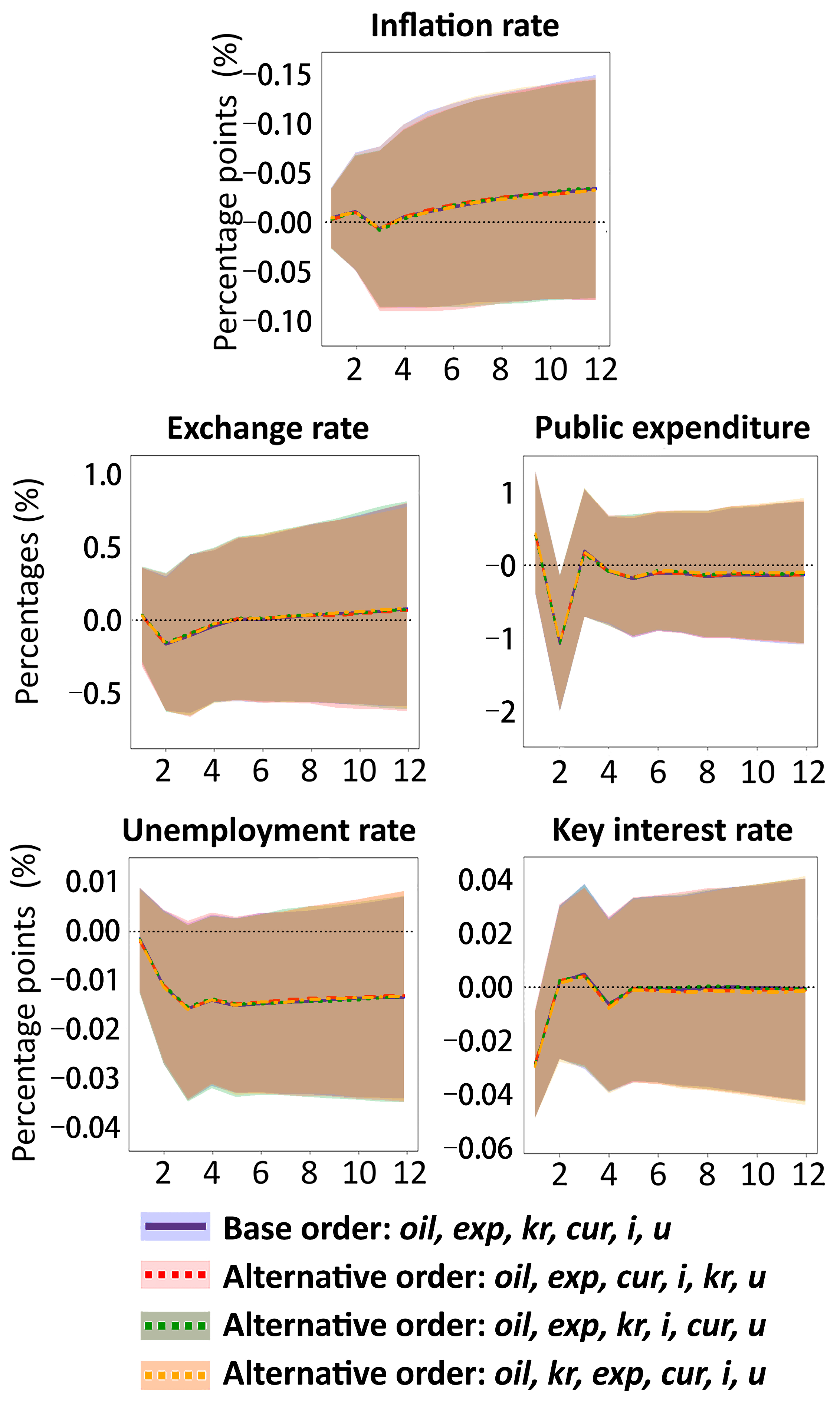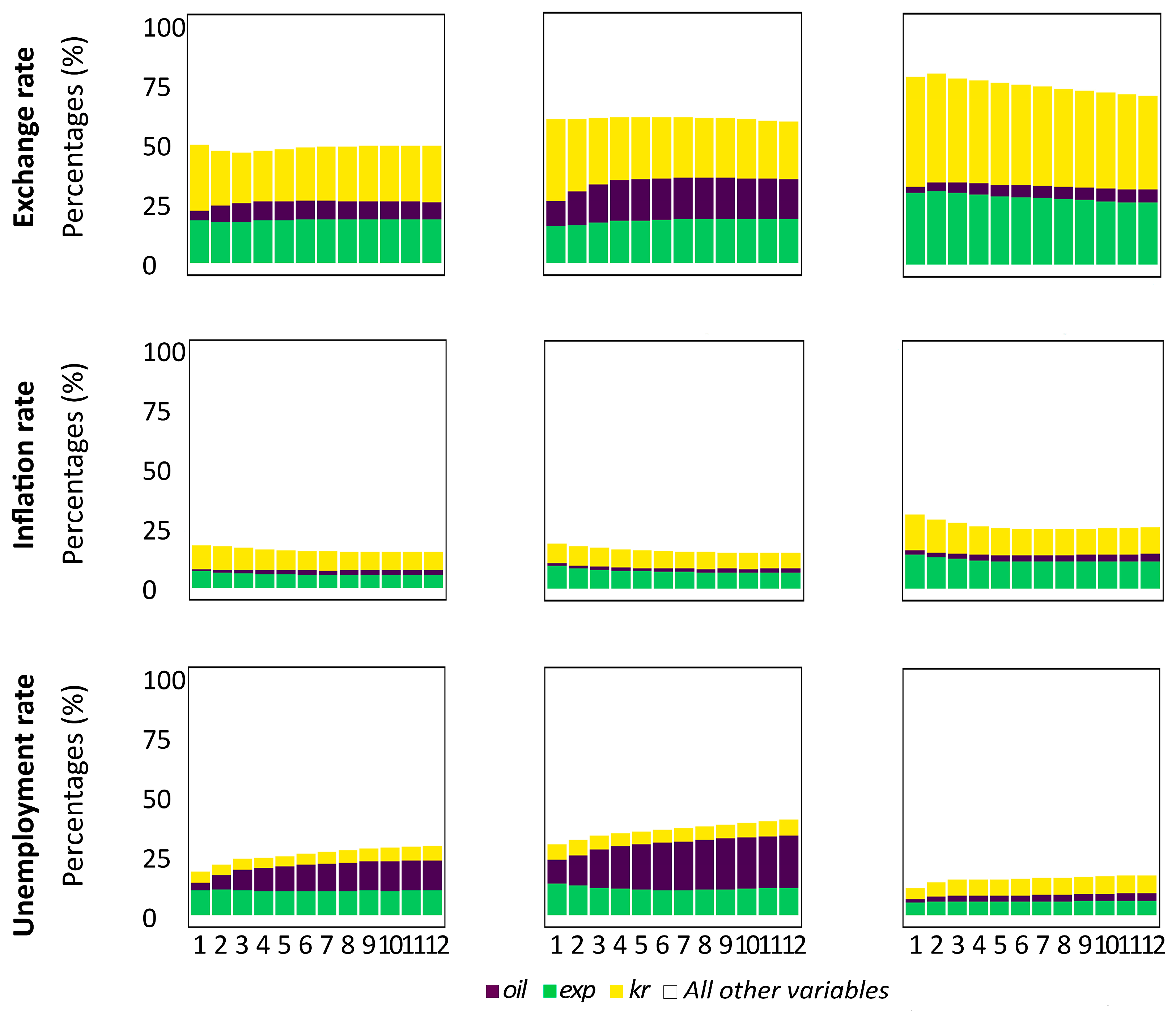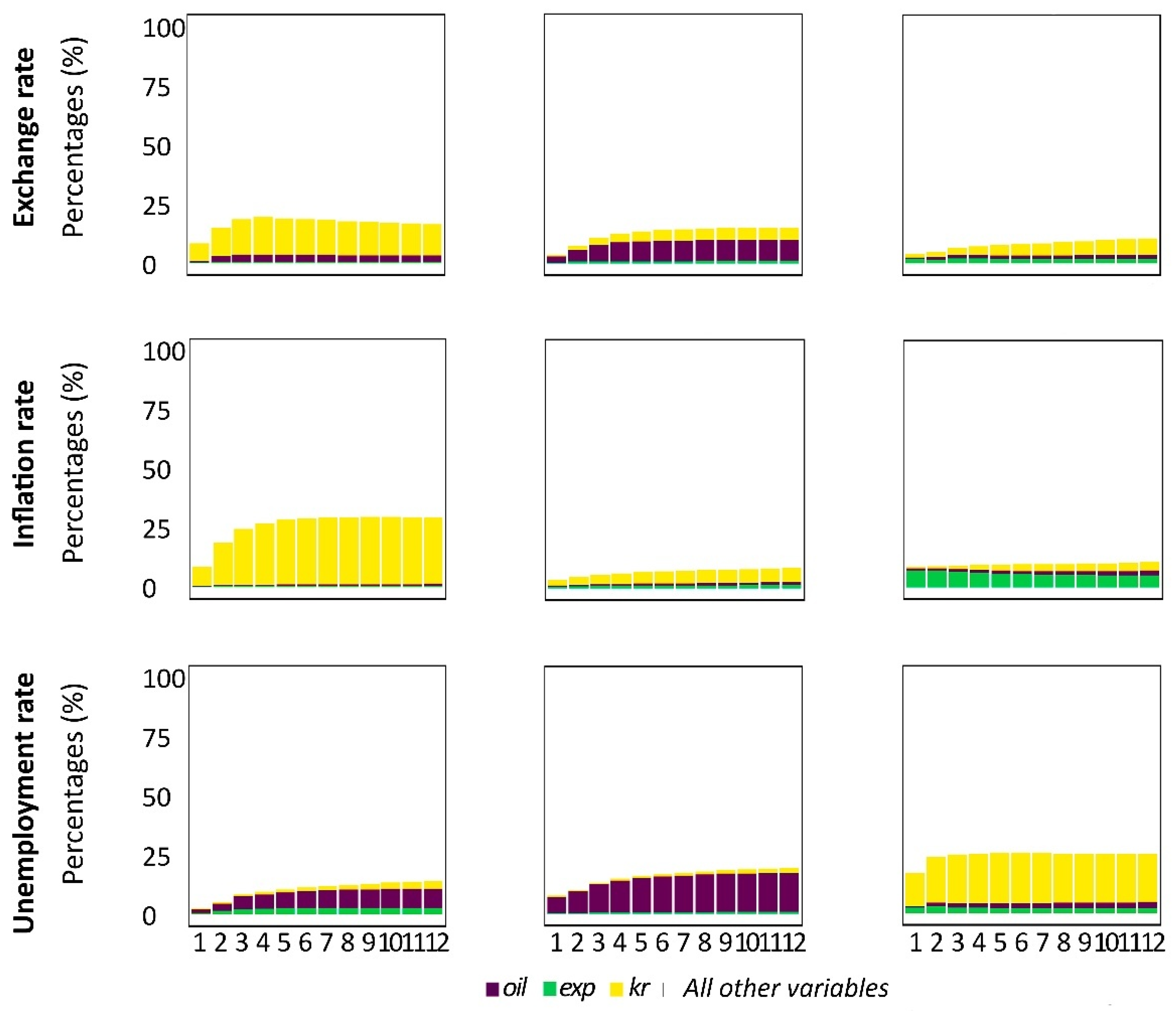 - Before 2014, macroeconomic policy (government expenditure and key interest rate) demonstrated predominantly procyclical responses to shocks in oil revenues. Since 2014, there has been an increase in countercyclicality in the response of macroeconomic policy to oil revenue booms.