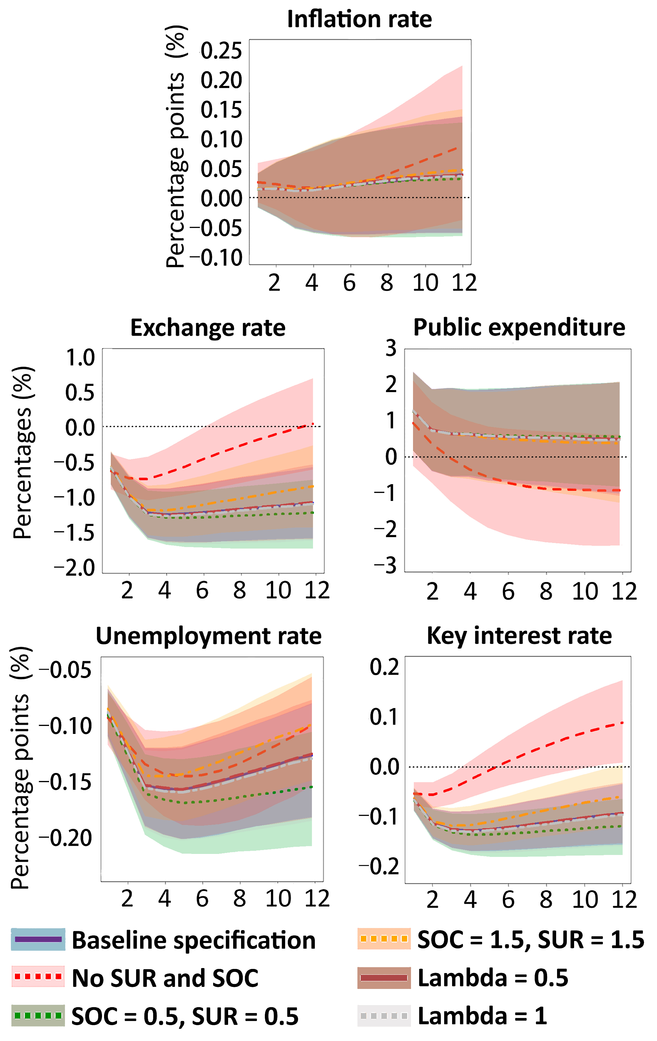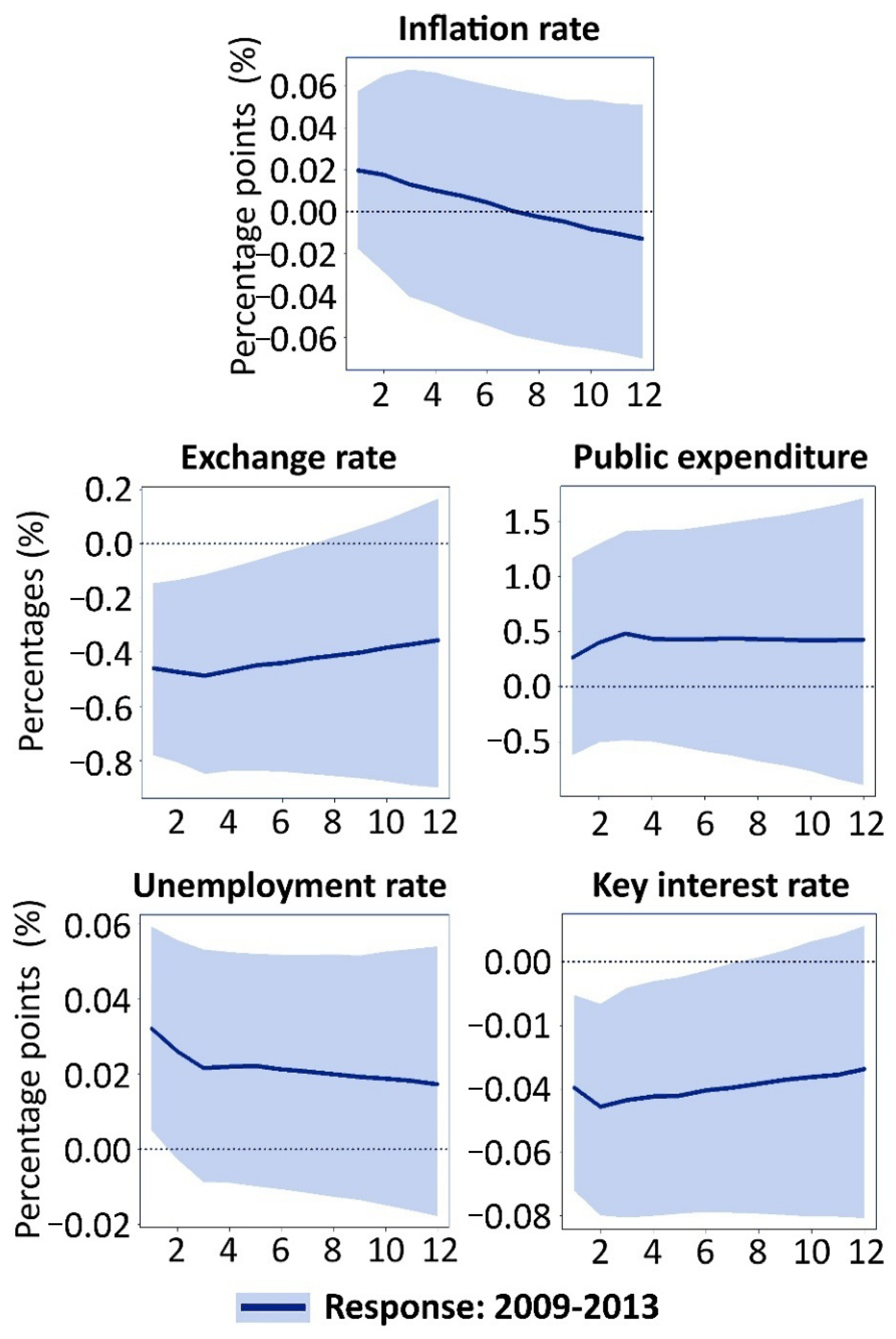 | Tyunova (2019) [21] | Russia | Bayesian vector autoregression model (BVAR) | Countercyclical monetary policy after 2014 due to inflation targeting | 2000–2019 |