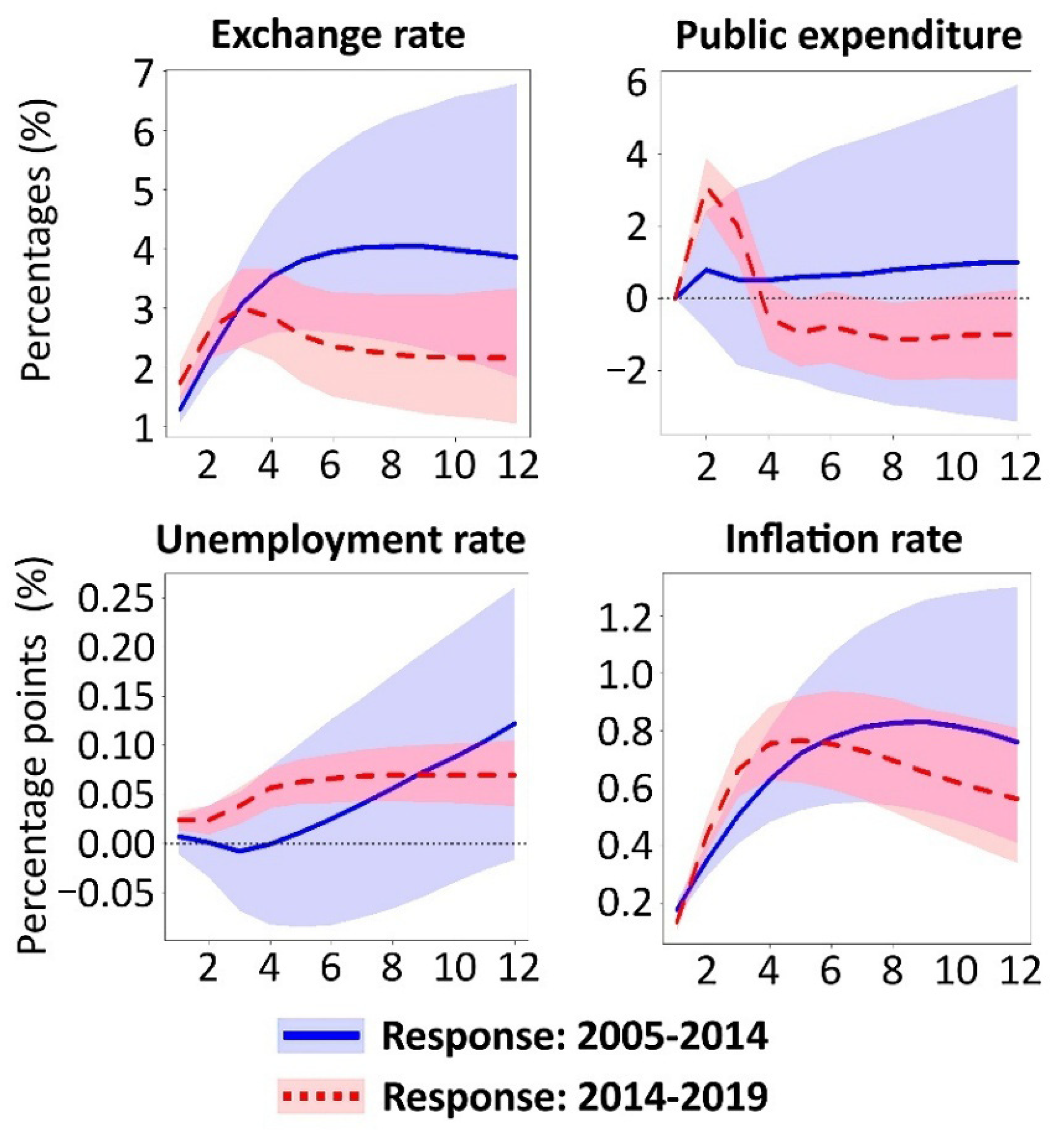 - After 2014, fiscal expansion shifted from an anti-inflationary tool to an inflationary driver and a depreciating force on the national currency.
