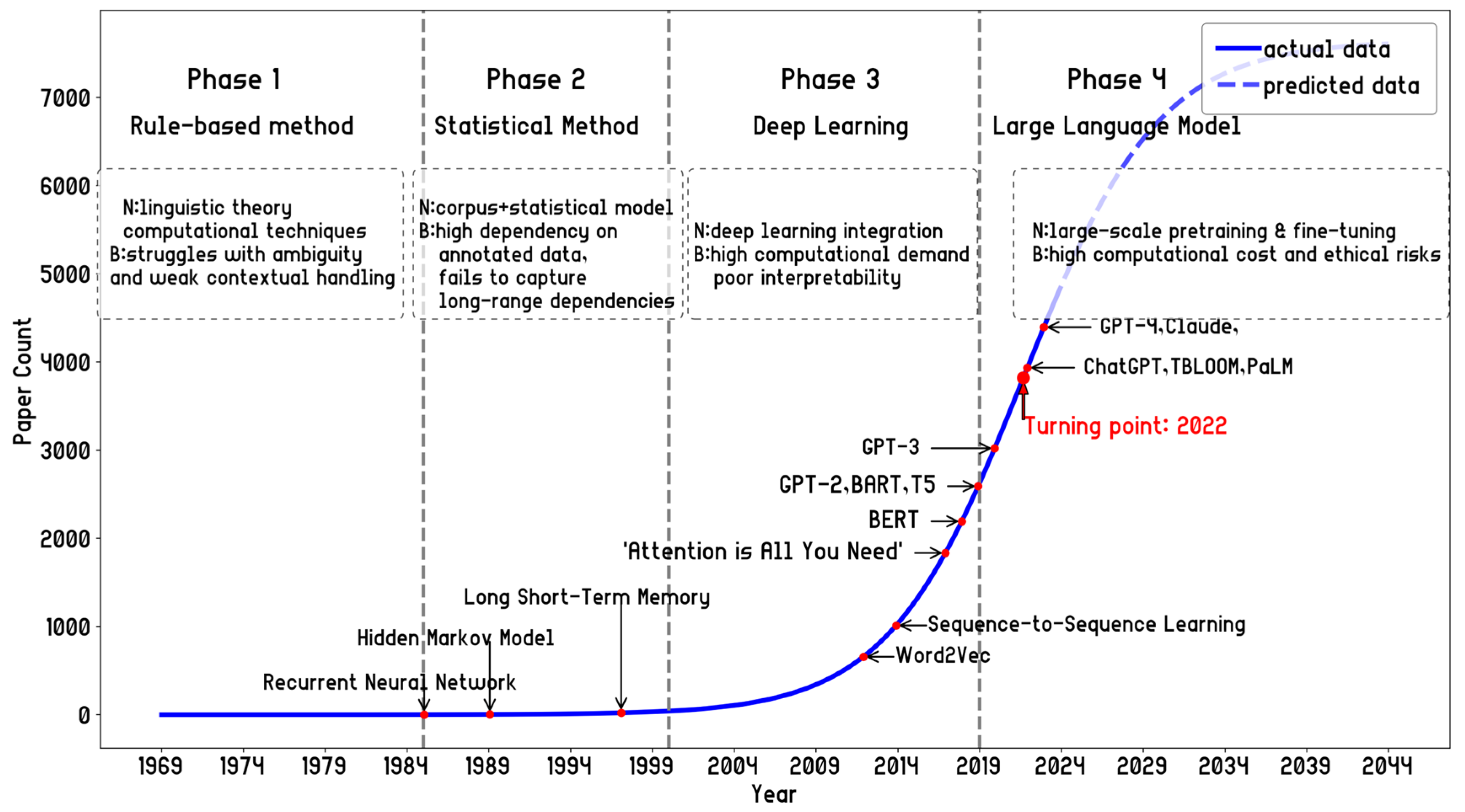 - Che, W.X.; Dou, Z.C.; Feng, Y.S.; Gui, T.; Han, X.P.; Hu, B.T.; Huang, M.L.; Huang, X.J.; Liu, K.; Liu, T.; et al. Towards a Comprehensive Understanding of the Impact of Large Language Models on Natural Language Processing: Challenges, Opportunities and Future Directions. Sci. Sin. Inf. 2023, 53, 1645–1687. [Google Scholar]
