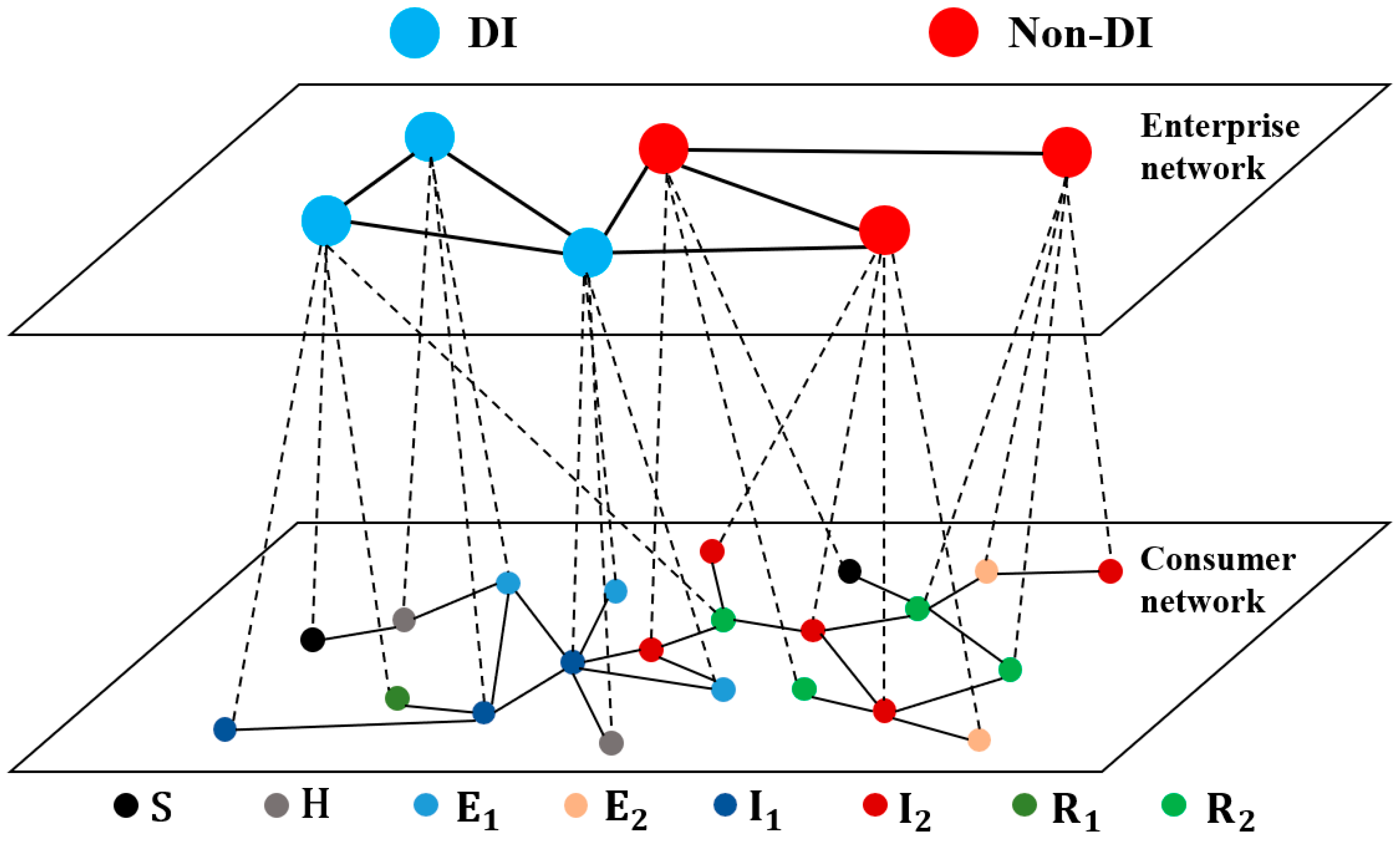 This study uses a dual-layer coupled enterprise–consumer network model to explain how DI diffusion unfolds in the NEV sector under policy-driven incentives and heterogeneous information transmission. Three conclusions emerge.