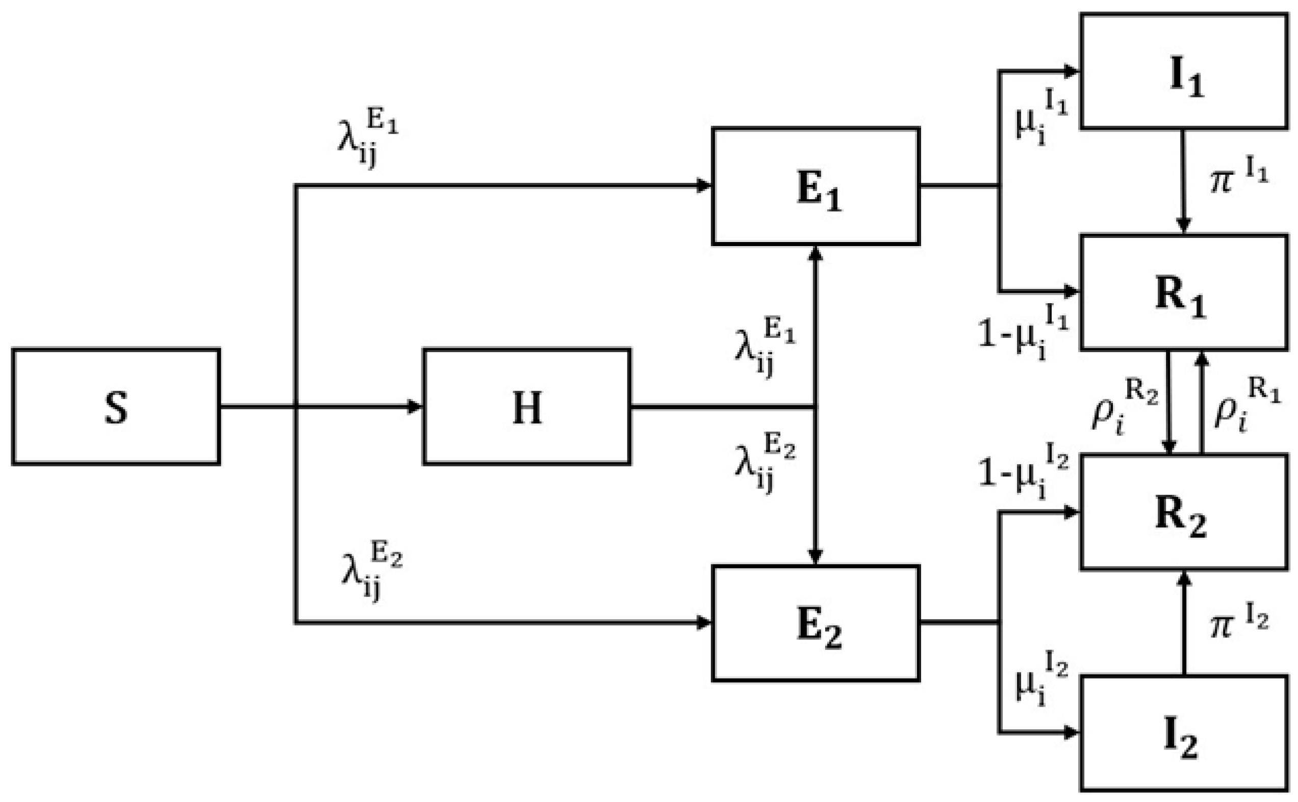 These considerations motivate modeling approaches that can jointly represent multi-state consumer belief dynamics under DI-stage uncertainty, enterprises’ adaptive strategy updates based on observable consumer-state distributions, and cross-layer feedback on interconnected networks. Compartmental state-transition models offer a parsimonious formalism for information, awareness, and attitude diffusion by representing how agents move across cognitive states through exposure and social contact [