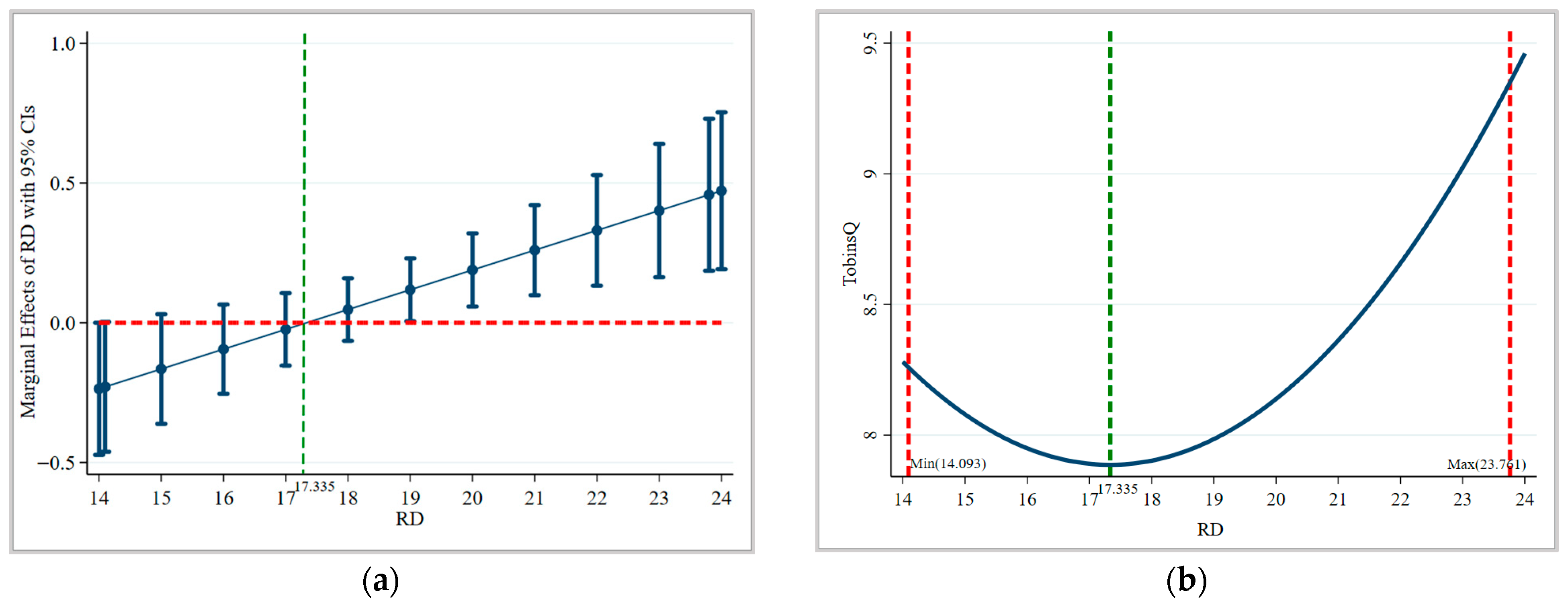21]. Moreover, NEV firms typically operate under conditions of high R&D intensity, long innovation cycles, and elevated technological risks. In the early stages of innovation, firms frequently encounter technological bottlenecks, managerial inexperience, and limited cost-control effectiveness. As a result, innovation input may initially suppress enterprise value.
