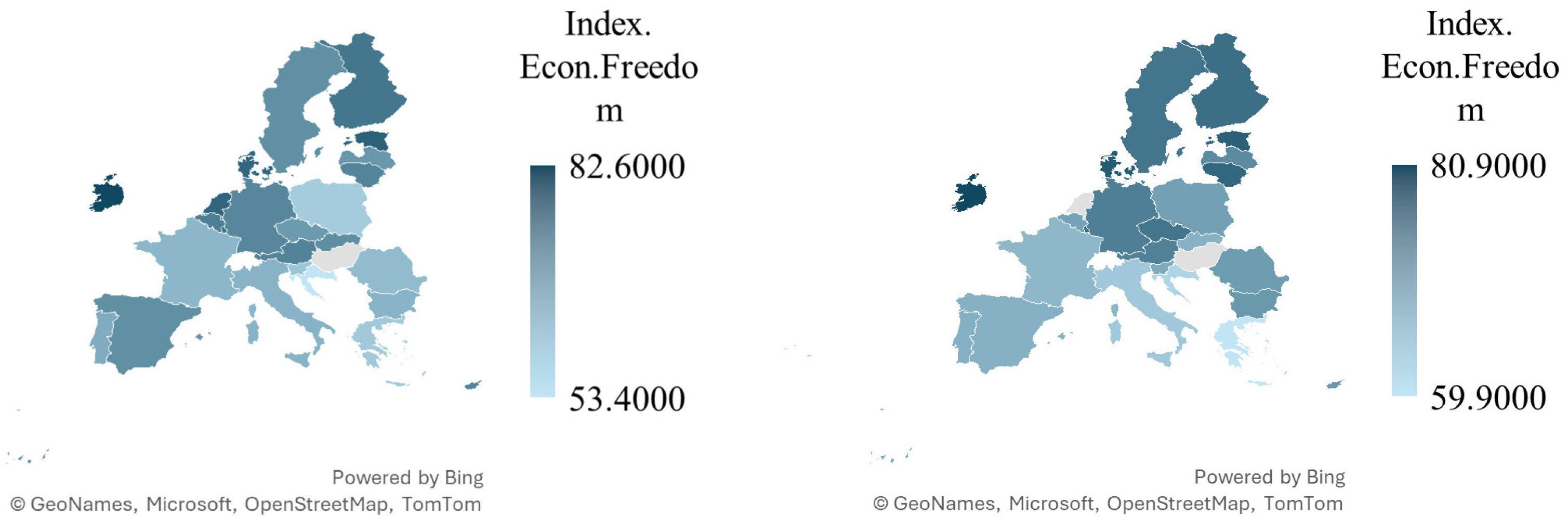 - The Heritage Foundation. Index of Economic Freedom: All Country Scores. Available online: https://www.heritage.org/index/pages/all-country-scores (accessed on 21 January 2024).