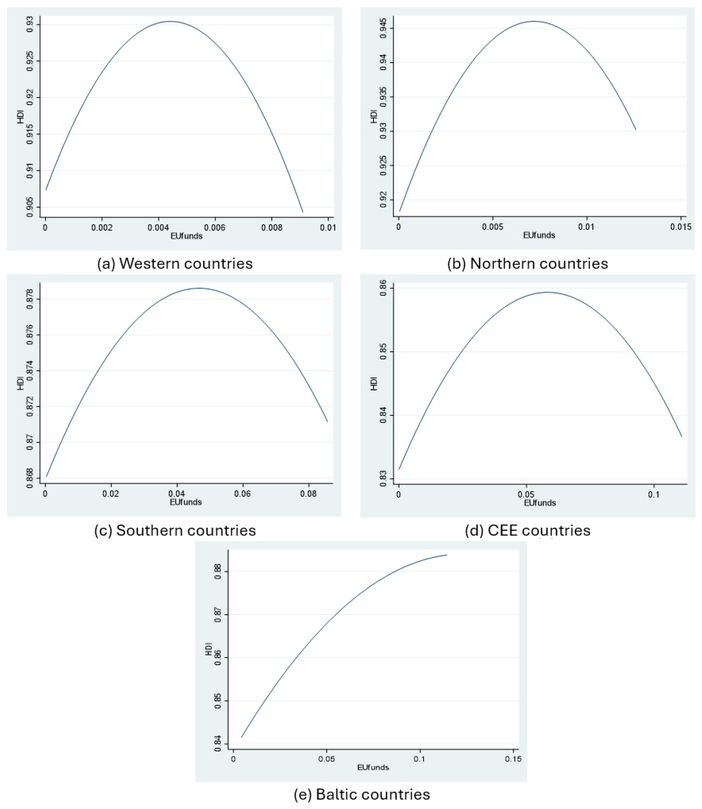 - RQ1: How does the intensity of ESI Funds influence socio-economic development across EU member states, and is the relationship linear or non-linear?