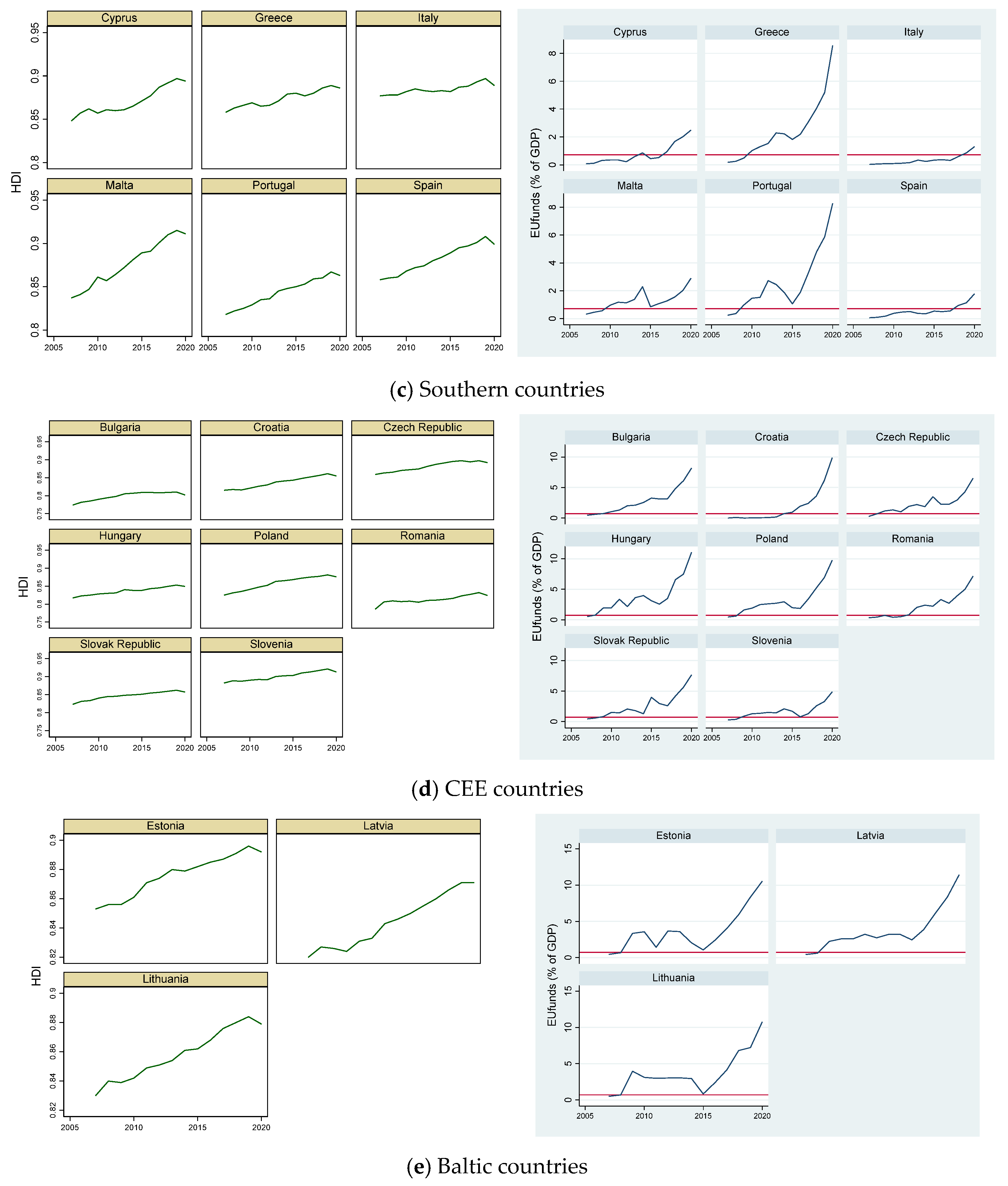 - Butkus, M.; Mačiulytė-Šniukienė, A.; Matuzevičiūtė, K.; Cibulskienė, D. What is the return on investing in European regional development and cohesion funds?: Difference-in-differences estimator approach. Ekon. Časopis 2019, 67, 647–676. [Google Scholar]