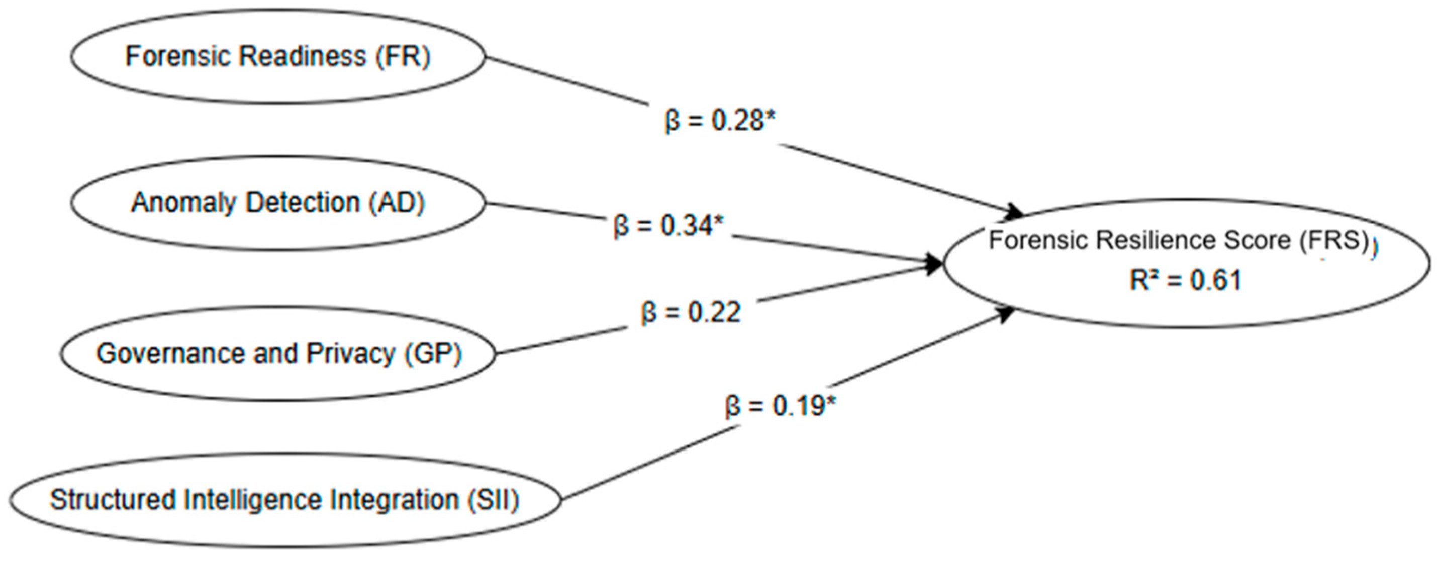 H4: Structured Intelligence Integration (SII) positively contributes to the Forensic Resilience Score (FRS).