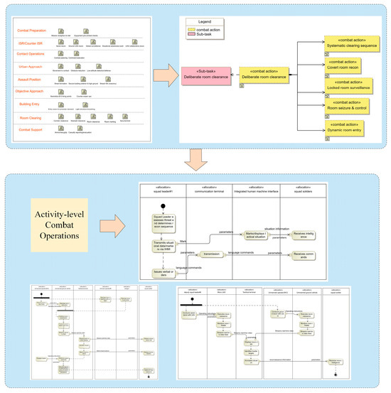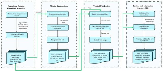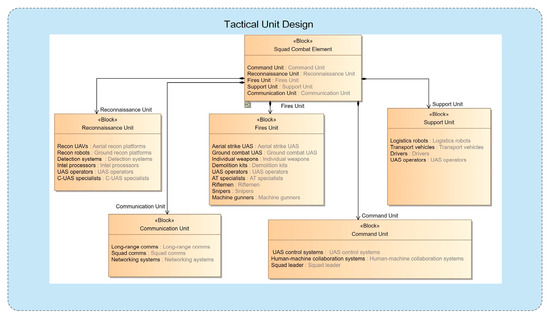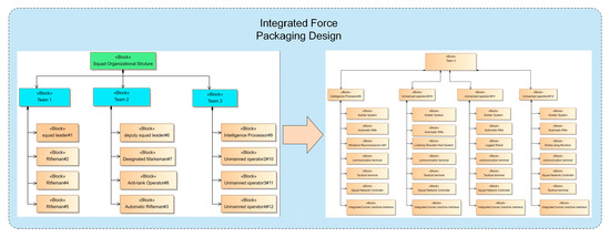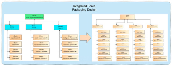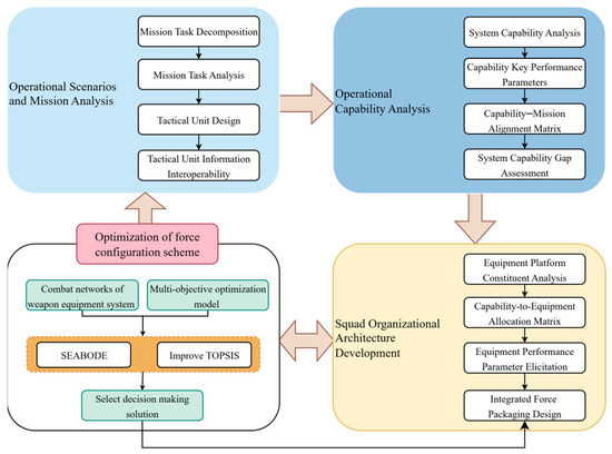In the design of Infantry Squad Weapon Equipment System-of-Systems (ISWES), traditional text-based systems engineering primarily relies on empirical methods derived from historical designs. This approach suffers from low design efficiency, protracted development cycles, and incomplete system requirements analysis. In addition, determining effective equipment configurations to maximize the integrated operational capabilities of weapon systems has garnered increasing attention. This study proposes a micro-scenario-oriented squad equipment system design framework featuring manned–unmanned teaming collocation optimization. First, an MBSE method applicable to ISWES modeling is proposed, and the initial allocation scheme of ISWES is obtained. Subsequently, a multi-objective optimization model for an allocation scheme is established based on operation loop theory with the objectives of maximizing combat effectiveness and network robustness while minimizing weapon costs, and the CCMO algorithm is employed to obtain the Pareto set. Then, a multi-attribute scheme selection method leveraging Successive Elimination of Alternatives Based on Order and Degree of Efficiency (SEABODE)-improved TOPSIS is proposed to identify the optimal collocation. Finally, a case study on infantry squad-level equipment system design validates the framework’s feasibility and effectiveness. Full article