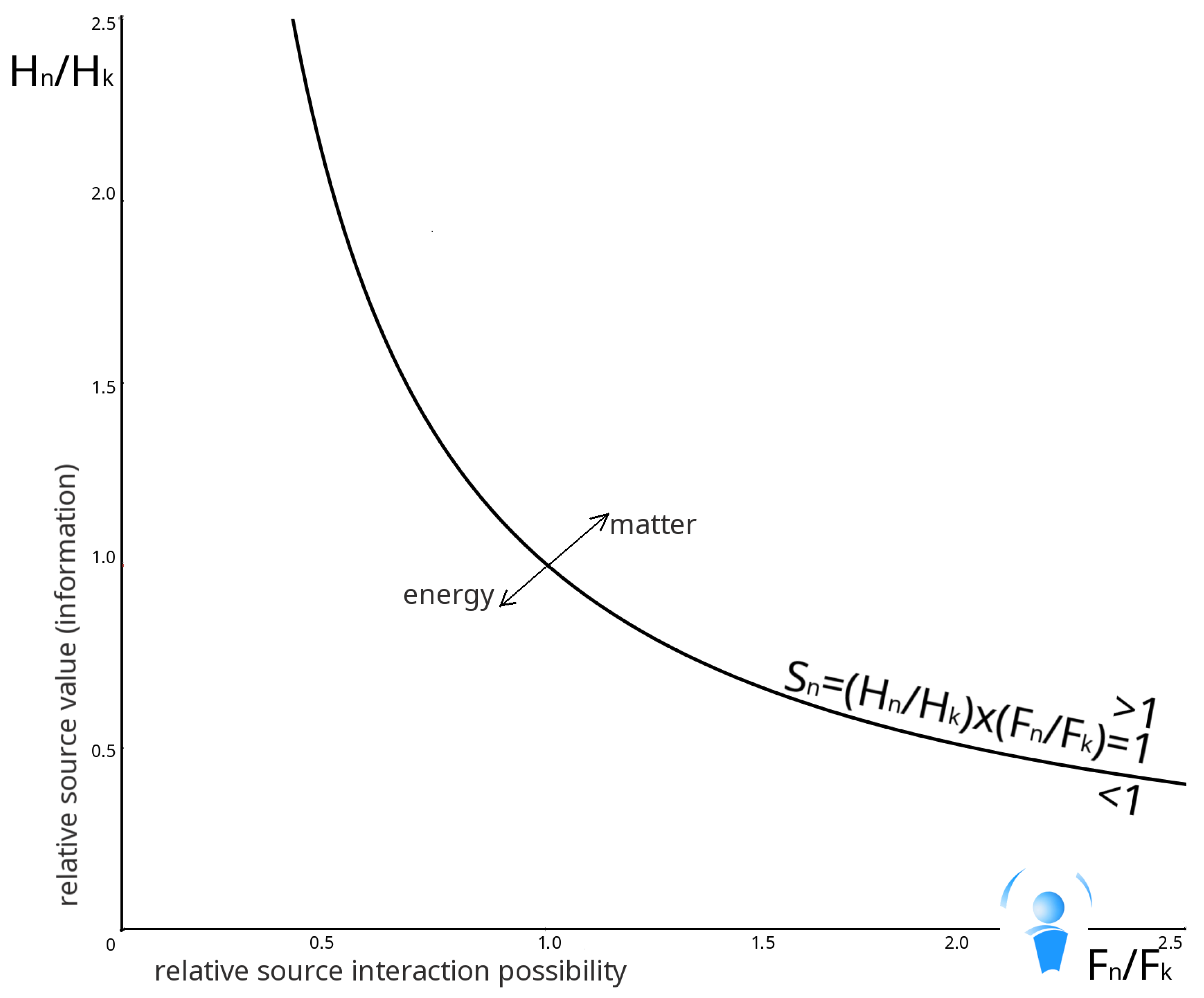 Resources of any type—whether matter or energy—are most conveniently evaluated in terms of their frequency or value relative to the second type of sources, since resources of the second type are primarily invested in interactions with sources of the first type.