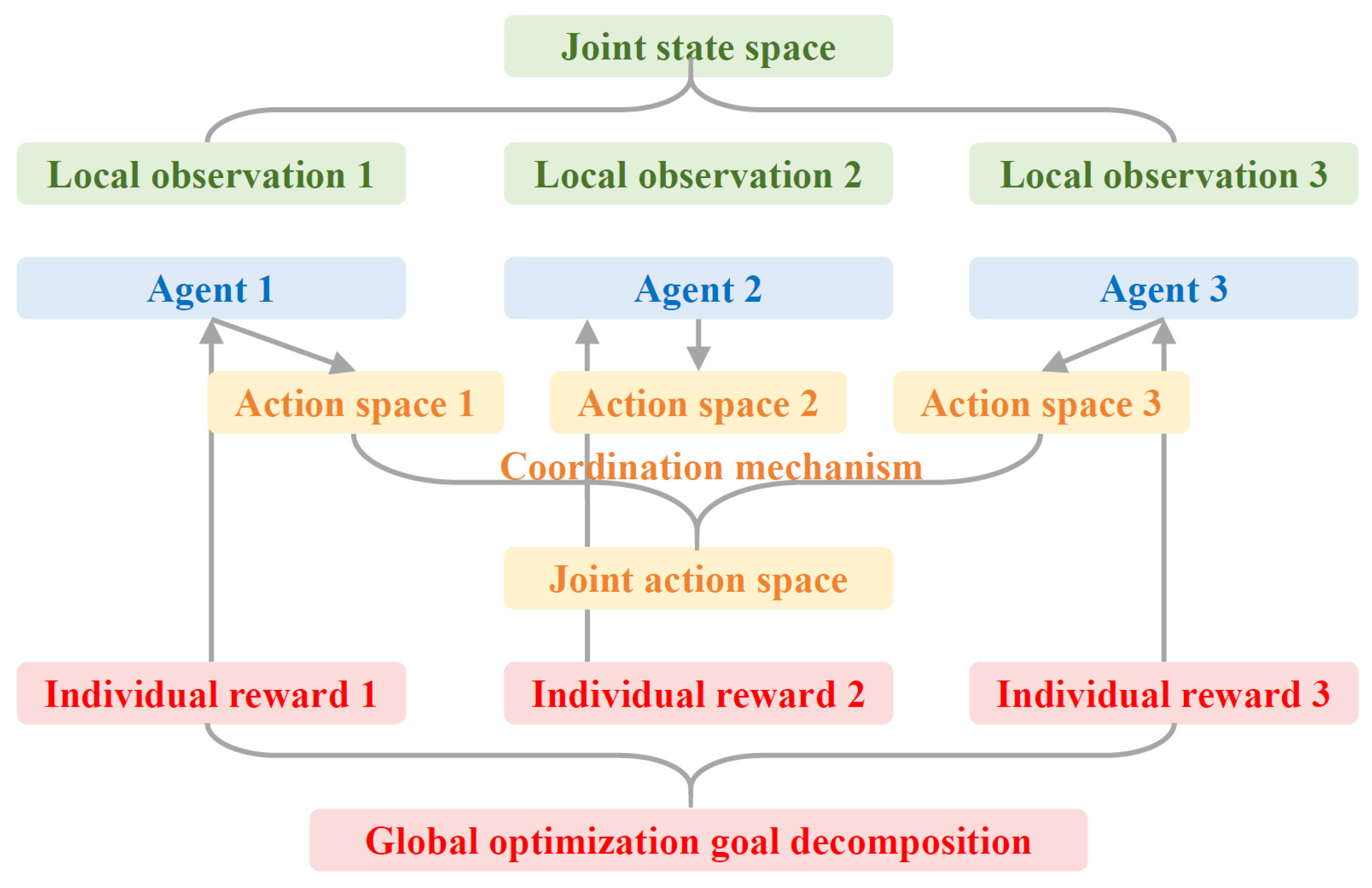 - A multi-agent architecture is formulated to jointly optimize variable speed limits, ramp metering, and intersection signals via MADDPG while representing dual upstream influences. The design resolves local conflicts, strengthens density regulation, and enhances control effectiveness under time-varying mixed conditions.