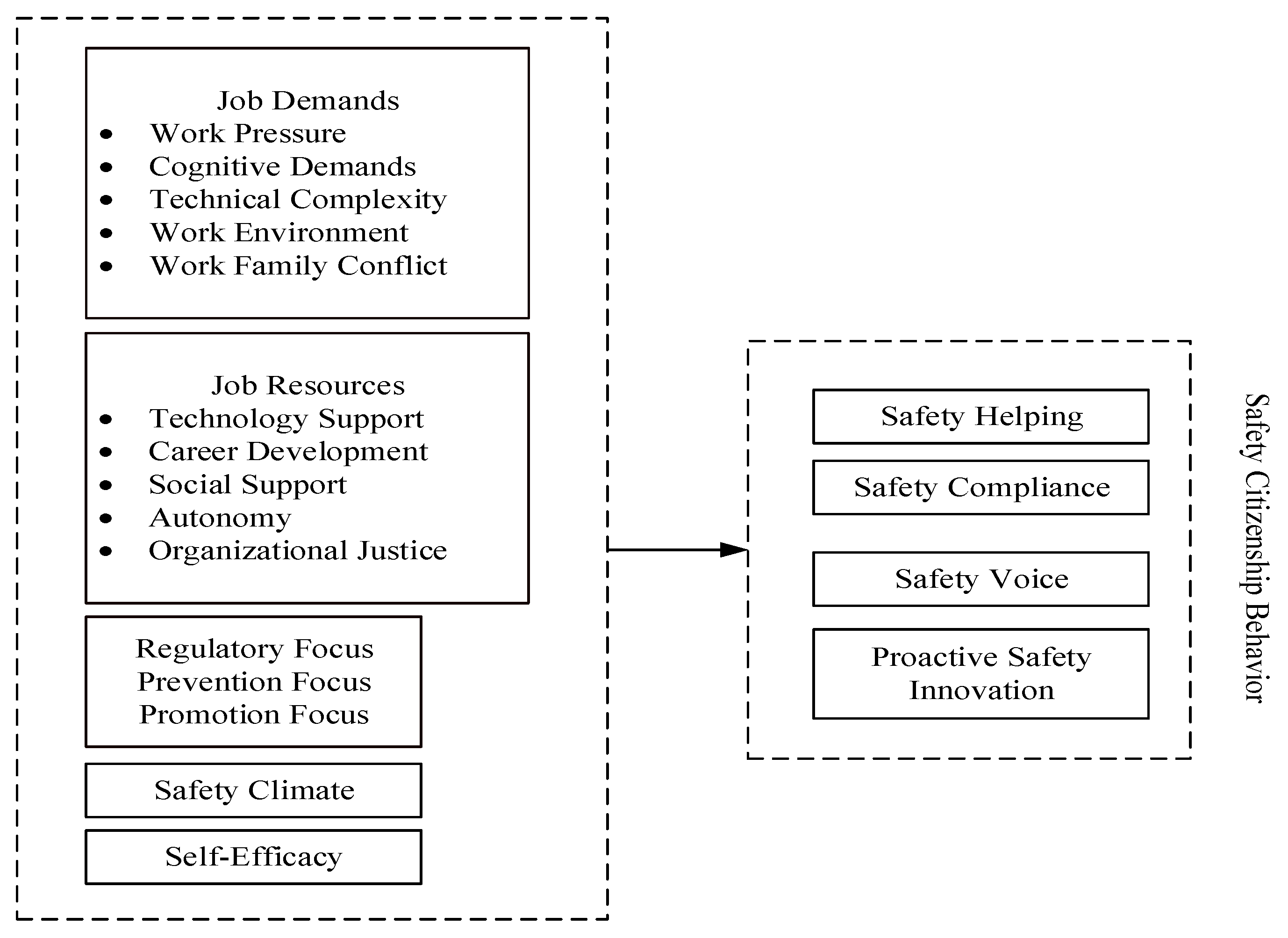 Table 6, Panel B. This finding indicates that, within the context of intelligent coal mines, safety-related citizen behavior is not solely driven by individual traits or demographic factors. Instead, it is more directly shaped by the interplay between job stress structures and accessible support resources. Further analysis through the JD-R lens suggests: when job demands increase while resource availability is insufficient, individuals are more likely to allocate their limited attention and energy toward “task completion and stress management,” thereby reducing the space for implementing extra-role safety behaviors. Conversely, when organizations provide sufficient resources (e.g., support, tools, autonomy, and development opportunities), individuals are more likely to internalize safety goals and adopt proactive safety behaviors. Crucially, the significance of the X