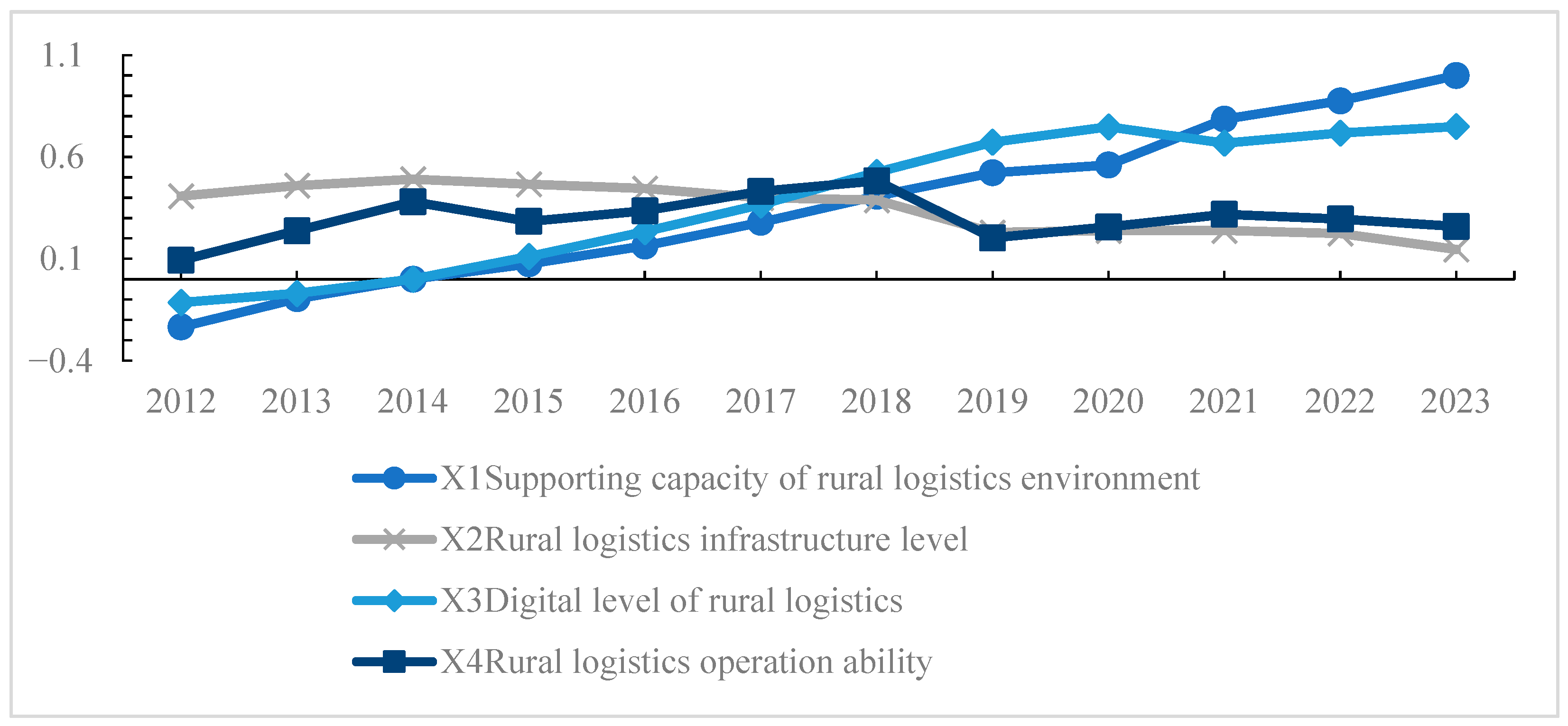 3.2.1. Analysis of the Temporal Evolution of Rural Logistics Capacity
