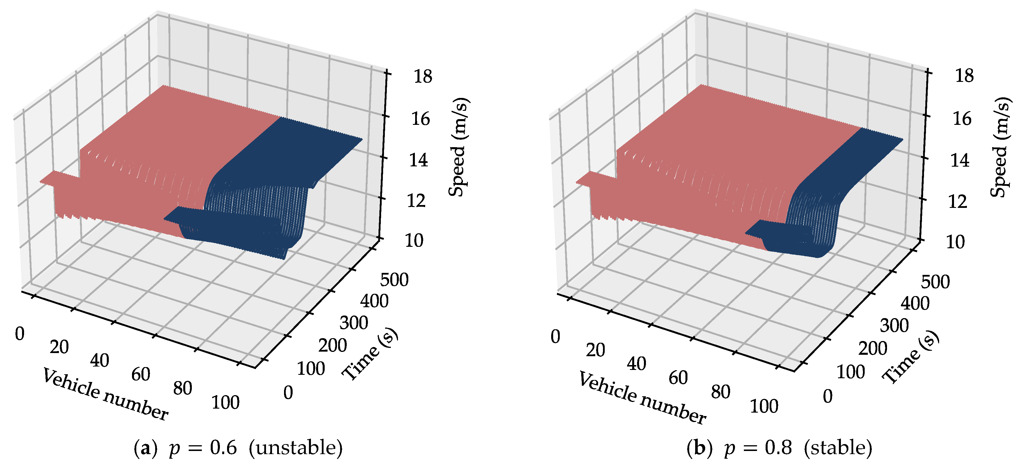 - Treiber, M.; Kesting, A. Traffic Flow Dynamics: Data, Models and Simulation; Springer: Berlin/Heidelberg, Germany, 2013; ISBN 978-3-642-32459-8. [Google Scholar]