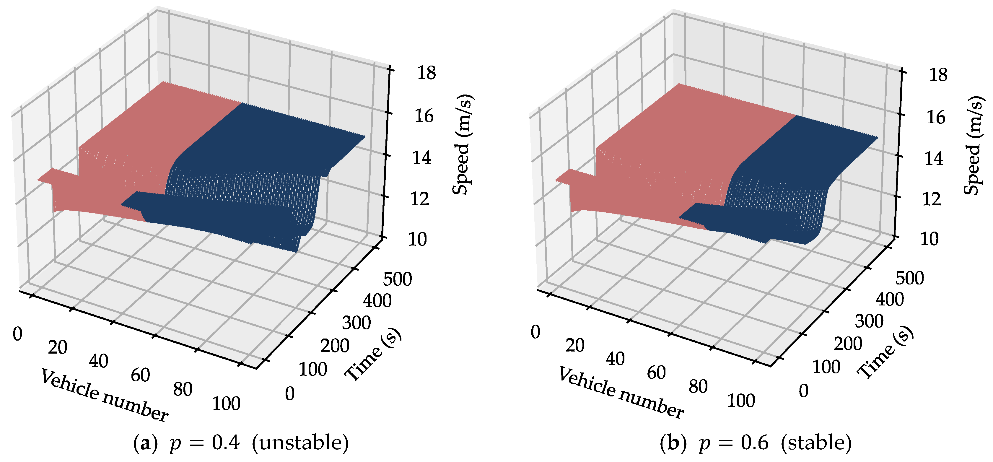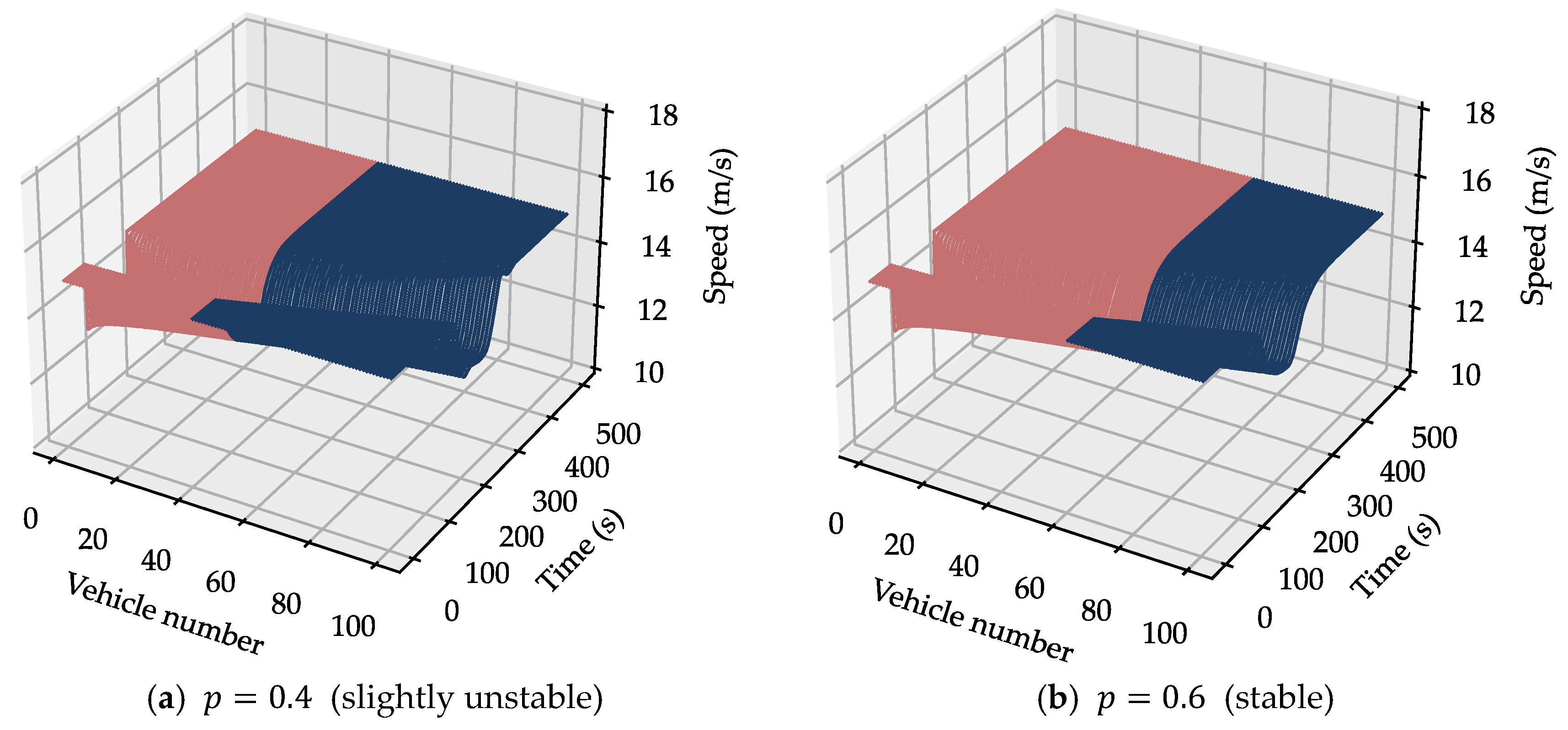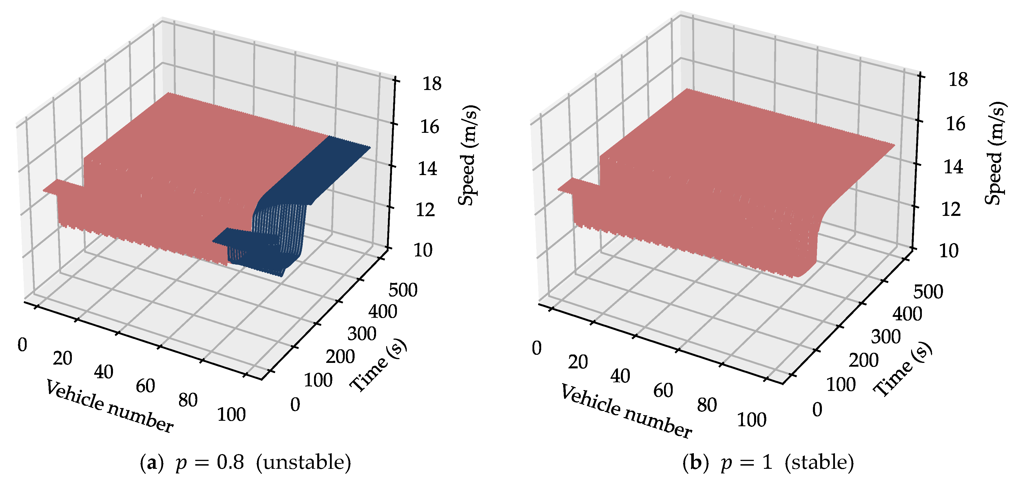- Wang, H.; Qin, Y.; Wang, W.; Chen, J. Stability of CACC-Manual Heterogeneous Vehicular Flow with Partial CACC Performance Degrading. Transp. B Transp. Dyn. 2019, 7, 788–813. [Google Scholar] [CrossRef]