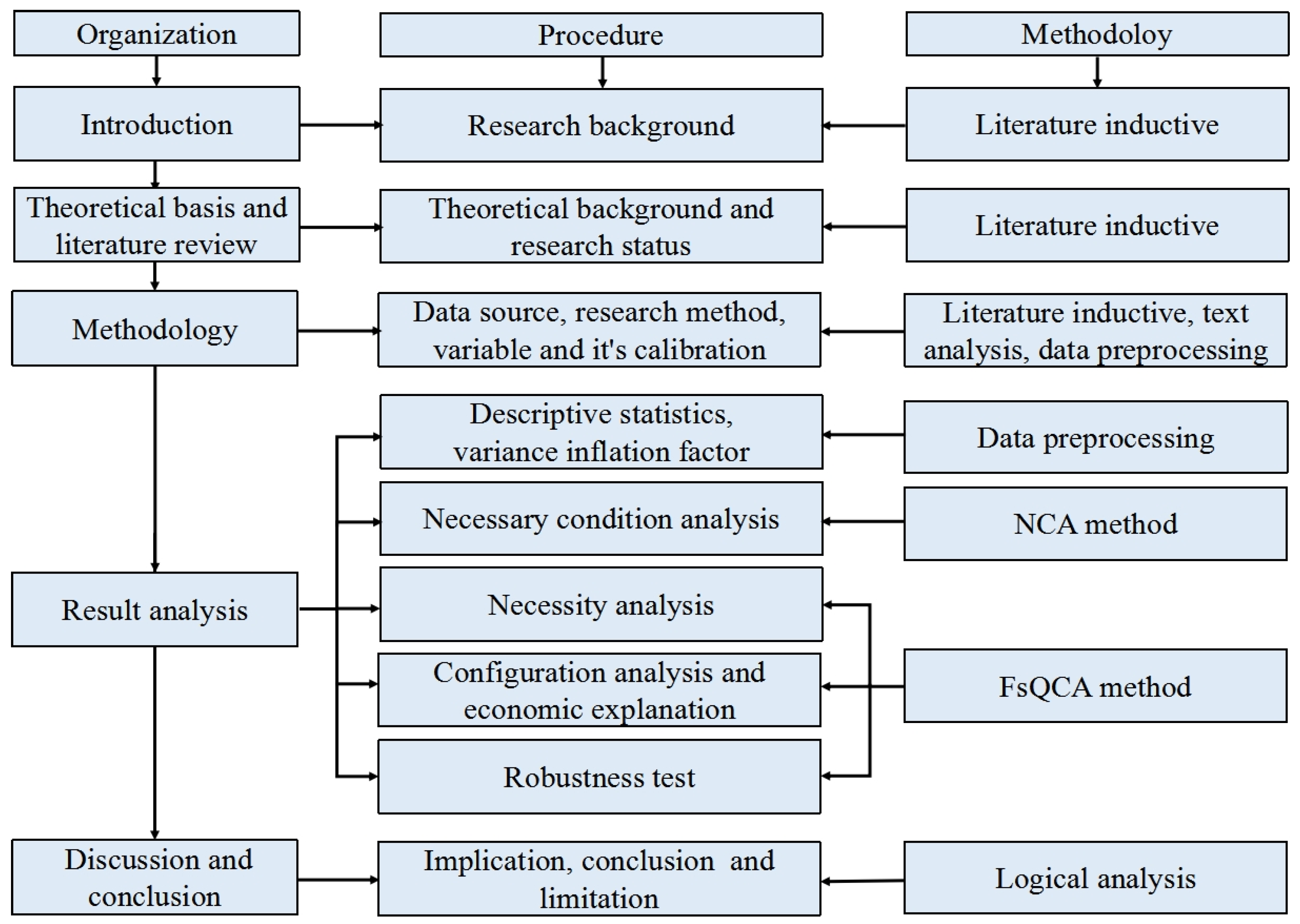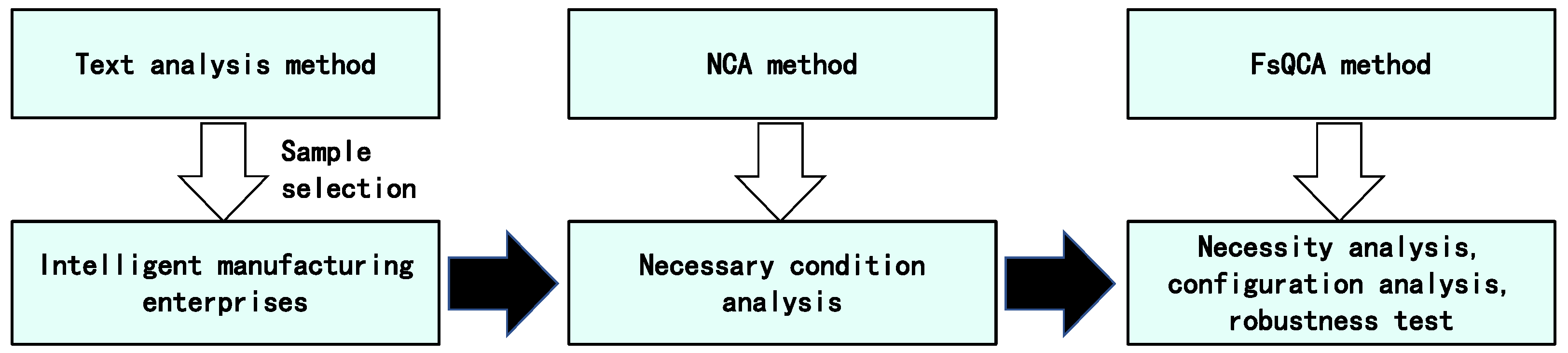 Figure 2. Text analysis is used to identify smart manufacturing enterprises. The NCA method is applied to test whether necessary conditions exist between the dependent and independent variables. The fsQCA method is systematically used to explore how the three institutional logic jointly shape different pathways in corporate risk-taking behavior. A detailed description of each research method is provided below. The selection of this methodological combination is based on the following considerations. First, this study focuses on the configurational effects of multiple institutional logics rather than their net effects. This aligns closely with the methodological foundation of FsQCA. Second, the sequential use of NCA and FsQCA provides a comprehensive understanding of synergistic relationships. It does so by examining both necessary conditions and sufficiency configurations.