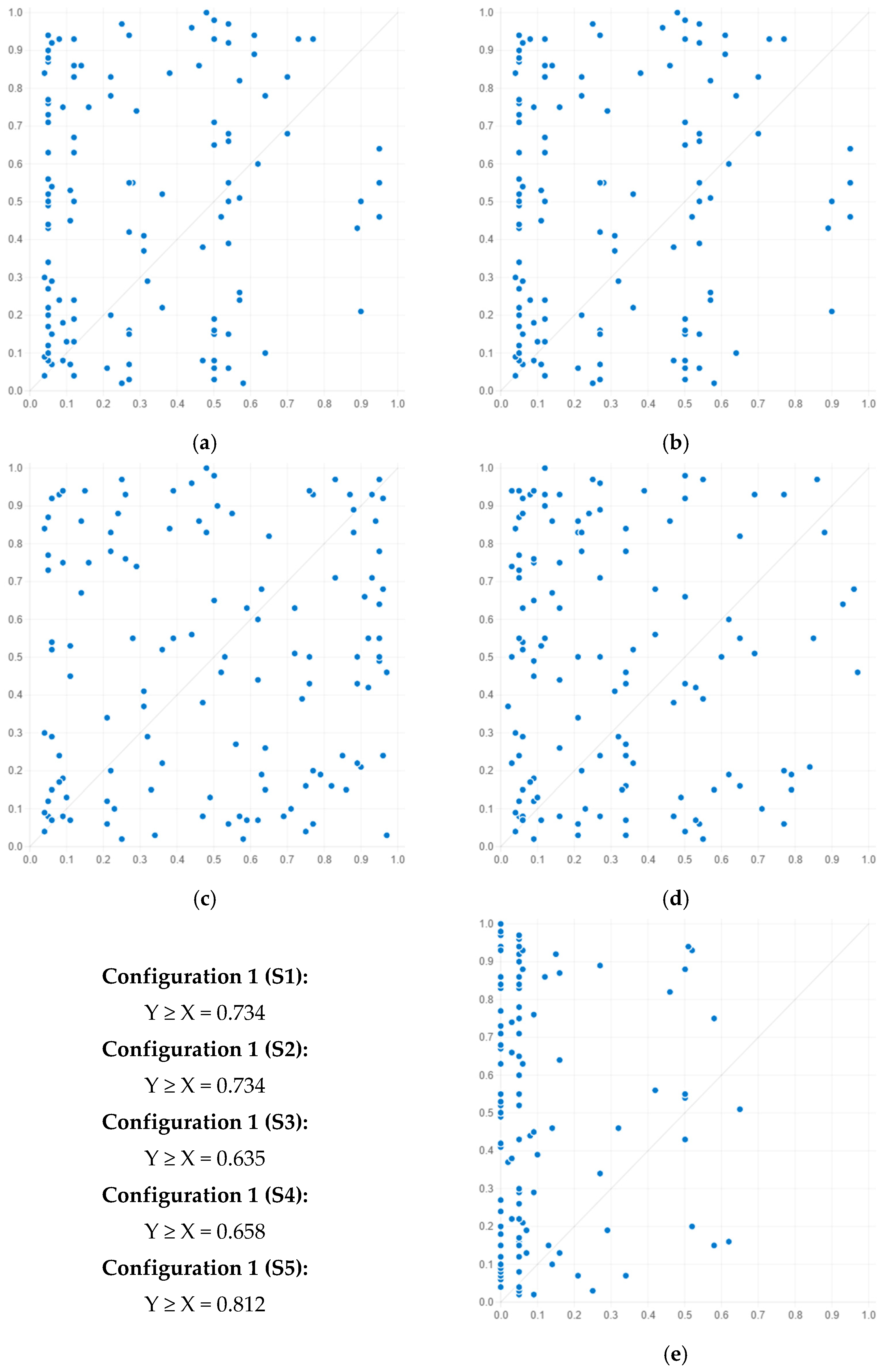 Through research calculations, it was found that the number of observed values in the upper triangular region is relatively larger than that in the lower triangular region, i.e., Y ≥ X = 0.5. This indicates that the identified conditional solutions are sufficient. It also supports the robustness of the research findings mentioned above.