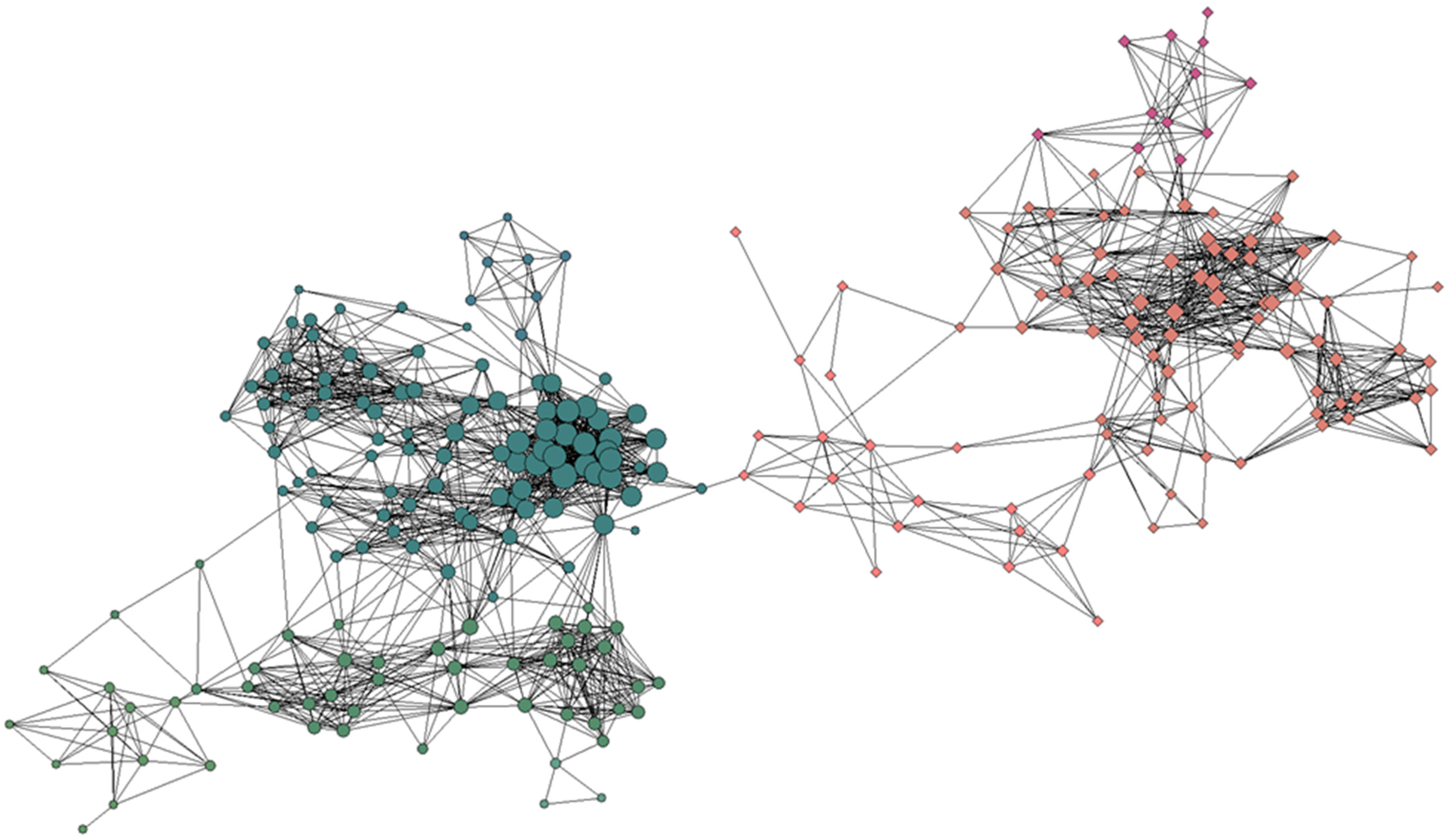 - Traag, V.A.; Waltman, L.; van Eck, N.J. From Louvain to Leiden: Guaranteeing well-connected communities. Sci. Rep. 2019, 9, 5233. [Google Scholar] [CrossRef] [PubMed]