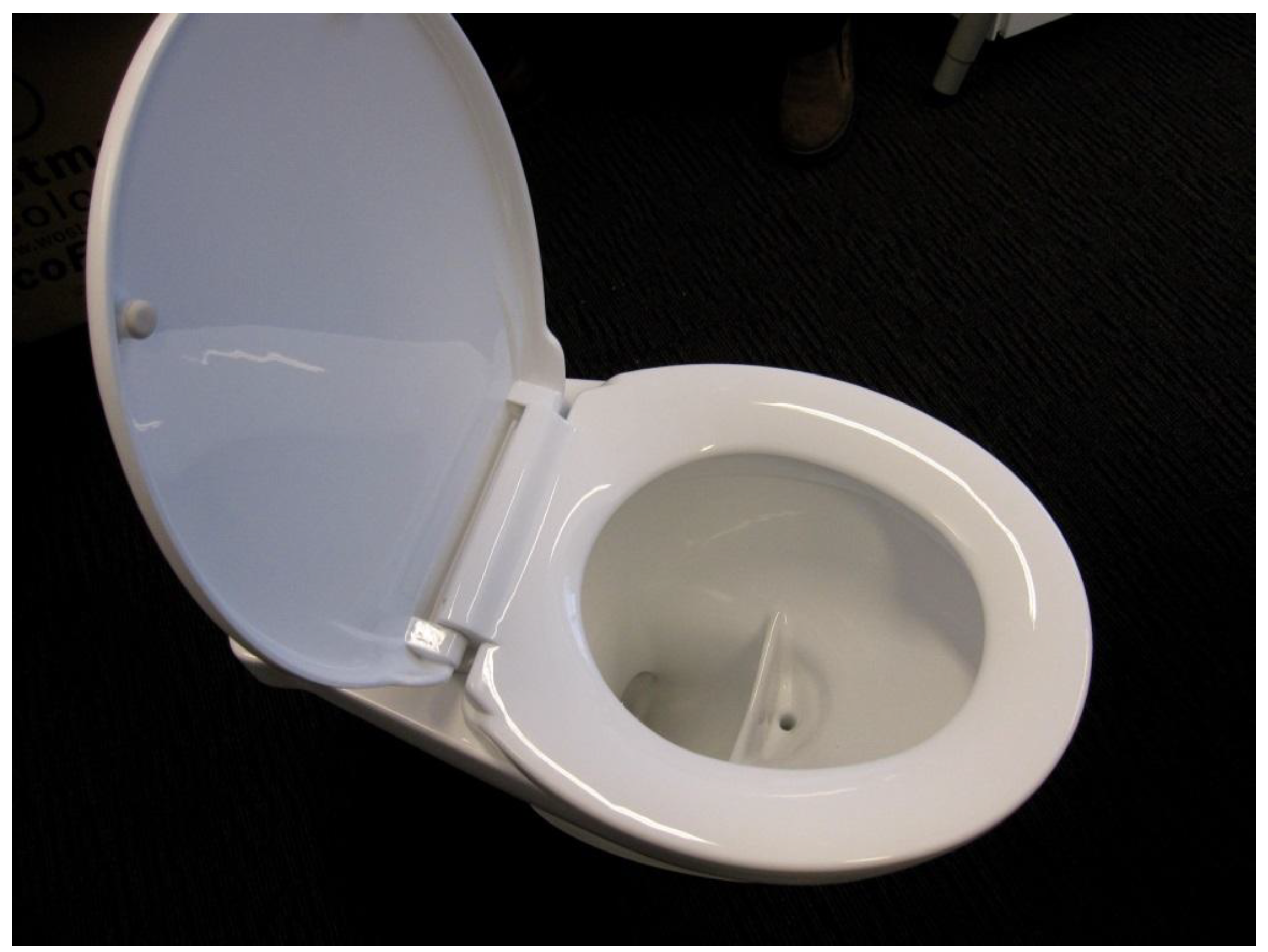 Wostman urine diverting toilet used during the pre-pilot trial. Urine is diverted into the front section of the partitioned bowl (Image: Jennifer Williams).