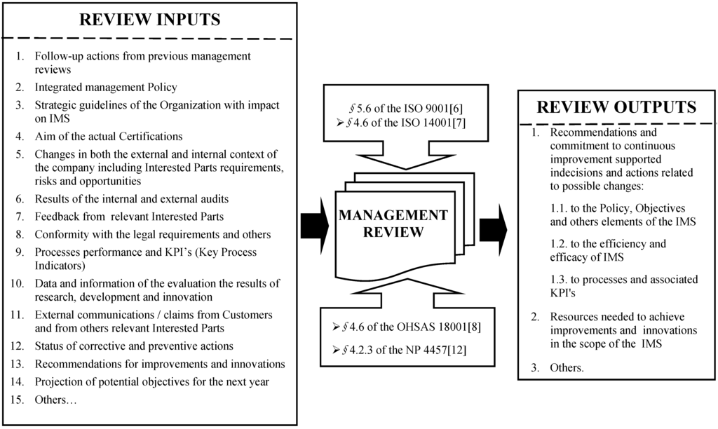 IMS—management review process—inputs and outputs. (Note: Adapted and upgraded from [,]).