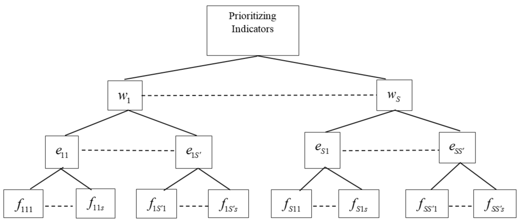 where is the priority weight of criterion () in AHP, is the priority weight of sub-criterion under criterion and is sub-sub-criterion () under sub-criterion .