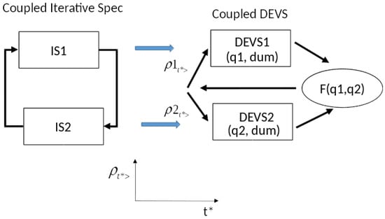 The coupled model has components, which are DEVS representations of the individual Iterative Specifications (according to Theorem D in Appendix D) and also a coordinator as shown in Figure 5.