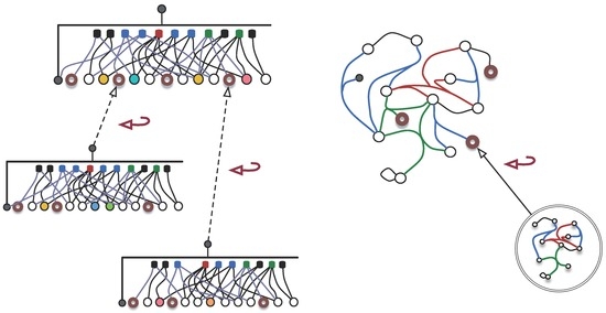 Using the representation of hyper-graphs as bipartite graphs [98,100], binding hyper-graphs may be depicted pictorially, as in Figure 6.