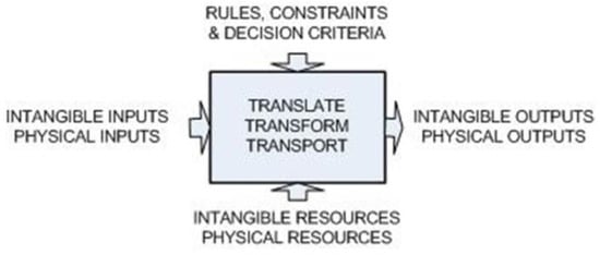 At the component interaction level, systems thinking has been applied using functional models to support software design [12], project management [13], flexible manufacturing systems development [14], business process mapping [15] and the management of complex assets [16]. This brings together a focus on function and context (e.g., IDEF0 modeling identifies constraints and resources associated with each function—see Figure 1) and supports the introduction of functional hierarchy.