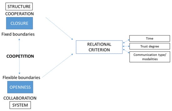 In particular, the interpretation of organizational boundaries proposed in VSA constantly mediates between the necessity to open corporate borders (in the concrete phase of real systemic exchange) and the need to close these boundaries (at a structural level in which companies should organize and optimize their internal resources). A viable system should lie at an intermediate level between total closure and total flexibility. The opposition of the two levels reflects the transition from a competitor-centered standpoint, grounded on opportunistic connections of win–lose type in which systems relate to each other in searching for utility (so, only on the basis of the establishment of transactional boundaries), to a partner-centered view in which cooperation is interpreted as a win–win synergistic exchange of resources (strategic boundaries). The first situation is defined competition whereas in the second one firms compete, collaborating and expanding their value chains: the optimum is halfway between the two situations in the development of coopetition [].