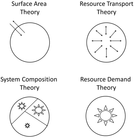 Schematic representation of the four modal theories included in the contextual multimodal theory (CMT) of metabolic scaling. Reproduced with permission from [20].