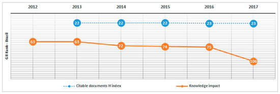 The Global Innovation Index [15] Brazilian ranking for citable documents H index and knowledge impact, from 2012 to 2017.