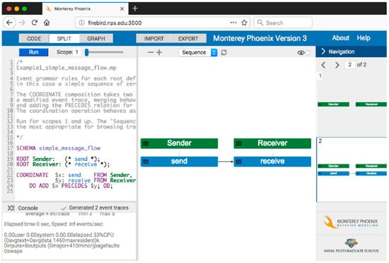 - Auguston, M. Monterey Phoenix, or How to Make Software Architecture Executable. In Proceedings of the 24th ACM SIGPLAN conference companion on Object oriented programming systems languages and applications (OOPSLA’09), Orlando, FL, USA, 25–29 October 2009; pp. 1031–1038. [Google Scholar]