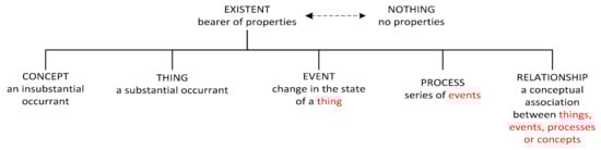 The term ‘ontology’ has different meanings to philosophers and scientists. The scientific meaning derives from Information Science, where ‘ontology’ refers to a shared conceptualisation of a domain, presented as an organised technical vocabulary for that domain []. The term ‘ontology’ is here meant to evoke the idea that the terms and their associated concepts are the building blocks of theories in the discipline or domain, and hence reflect the most basic units of thought about the subjects under study [] (p. 9). This is different from, but not unrelated to, the use of this term in Philosophy. In Philosophy, the term ‘Ontology’ refers to a discipline investigating what exists most fundamentally in the real world [,], and hence reflects the most fundamental units of thought for theorising about the nature of reality. In this paper we primarily intend the meaning from Information Science, although there are a few places where we will need to draw on the philosophical concept. We have tried to make the usage clear in each case.
