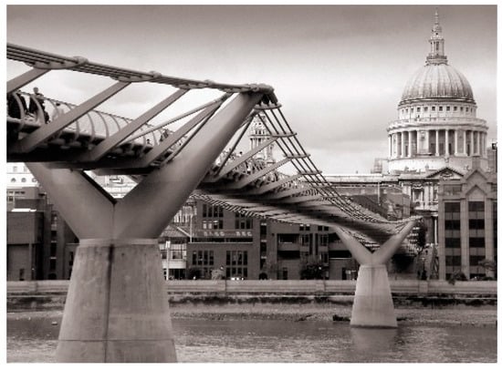 - Dallard, P.; Fitzpatrick, A.J.; Flint, A.; le Bourva, S.; Low, A.; Smith, R.M.R.; Willford, M. The London Millennium Footbridge. Struct. Eng. 2001, 79, 17–35. [Google Scholar]