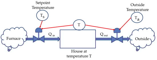 Stock-and-flow diagram for domestic heating system control.