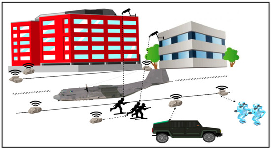 Figure 4 presents an example of a military scenario in which a human-machine team needs to collaborate and adapt as needed to counter potential intrusion of a perimeter defense set up to ensure physical security of a landed and currently parked C-130 aircraft [1,2]. The C-130 is a cargo and personnel carrier.